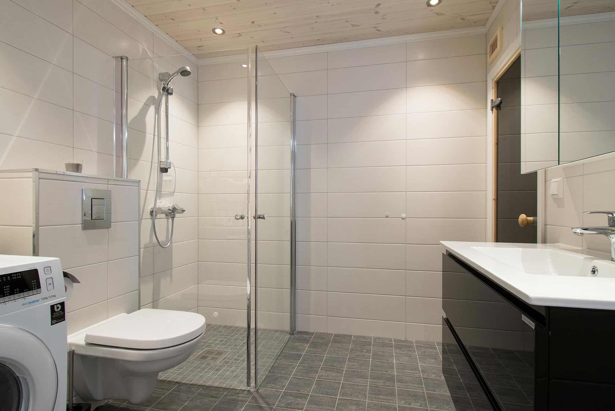 Badkamers:Badkamer 1: met douche, toilet en sauna. Badkamer 2: met douche en toilet.