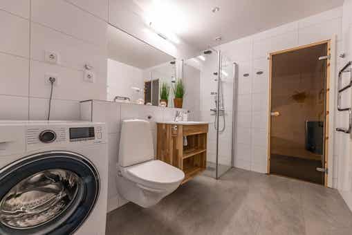 Badkamers:Badkamer 1: met douche/WC/sauna.