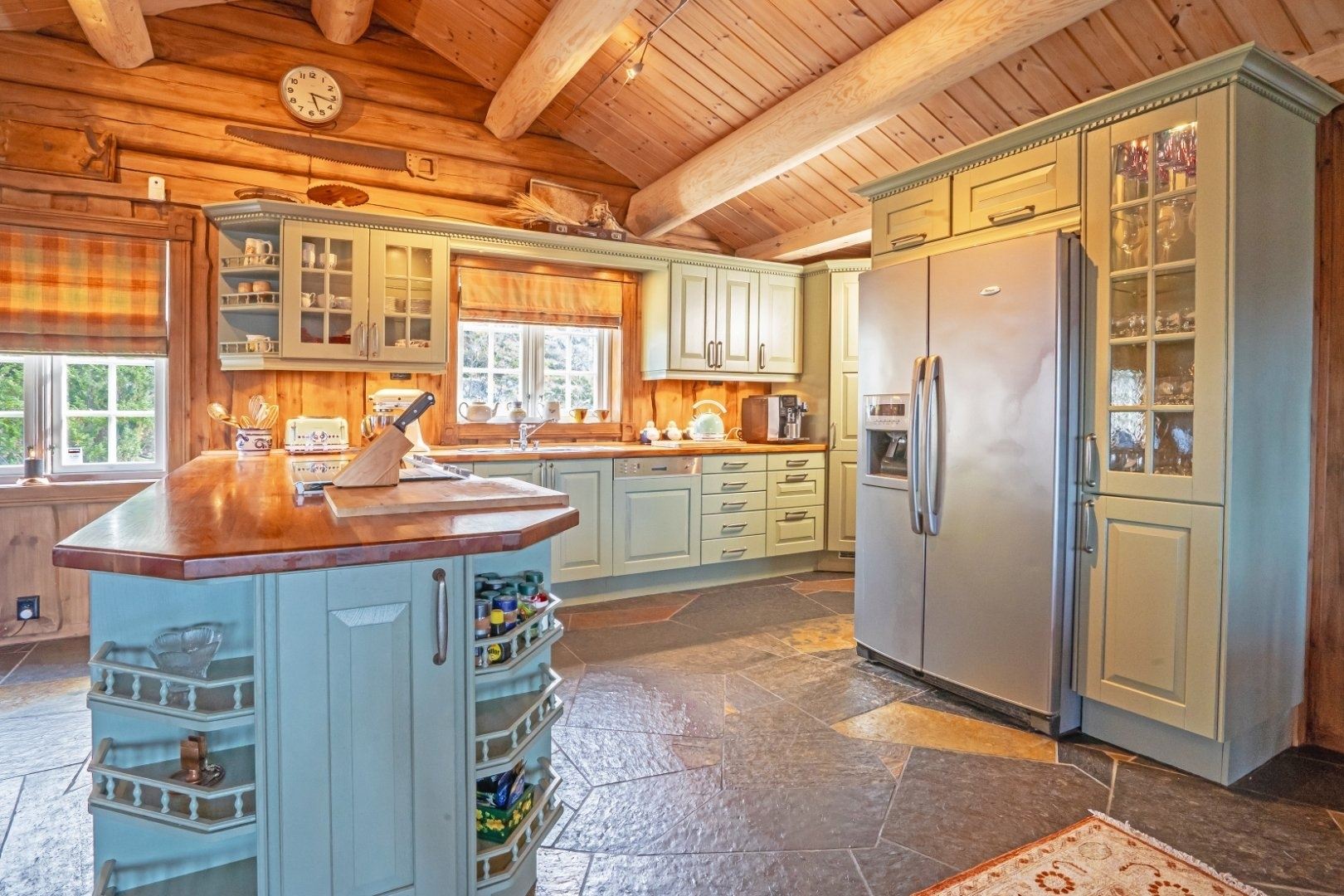 De hut heeft een open keuken met open haard, diverse zitjes voor zowel film- als spelavonden, een eettafel en een goed uitgeruste keuken.