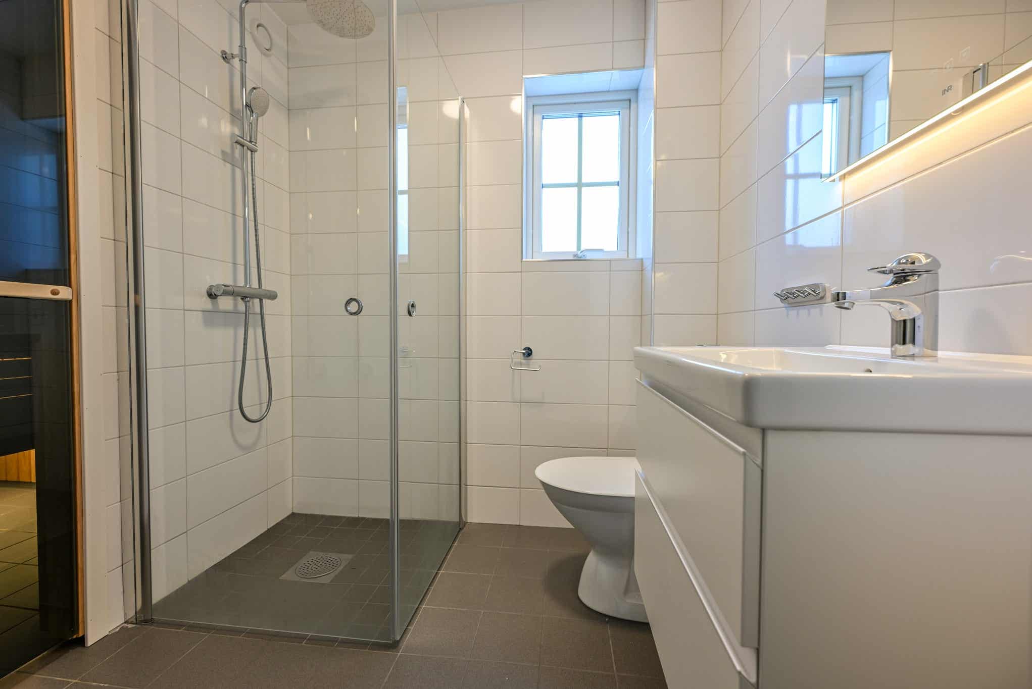 Badkamers:Badkamer 1: met douche/WC/sauna. Badkamer 2: met douche/WC.