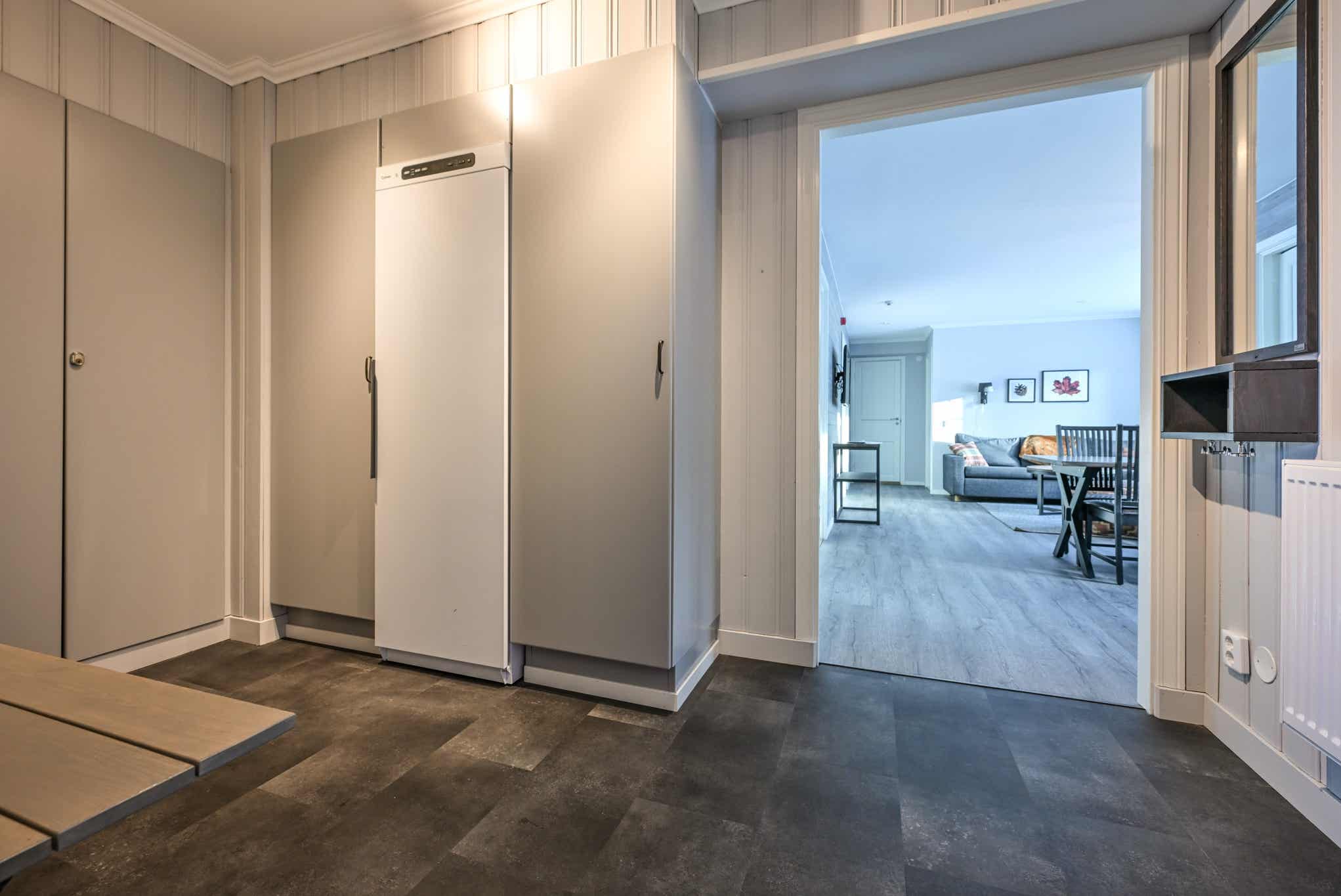 TV, droogkast, 1 kinderstoel, berging voor ski’s.