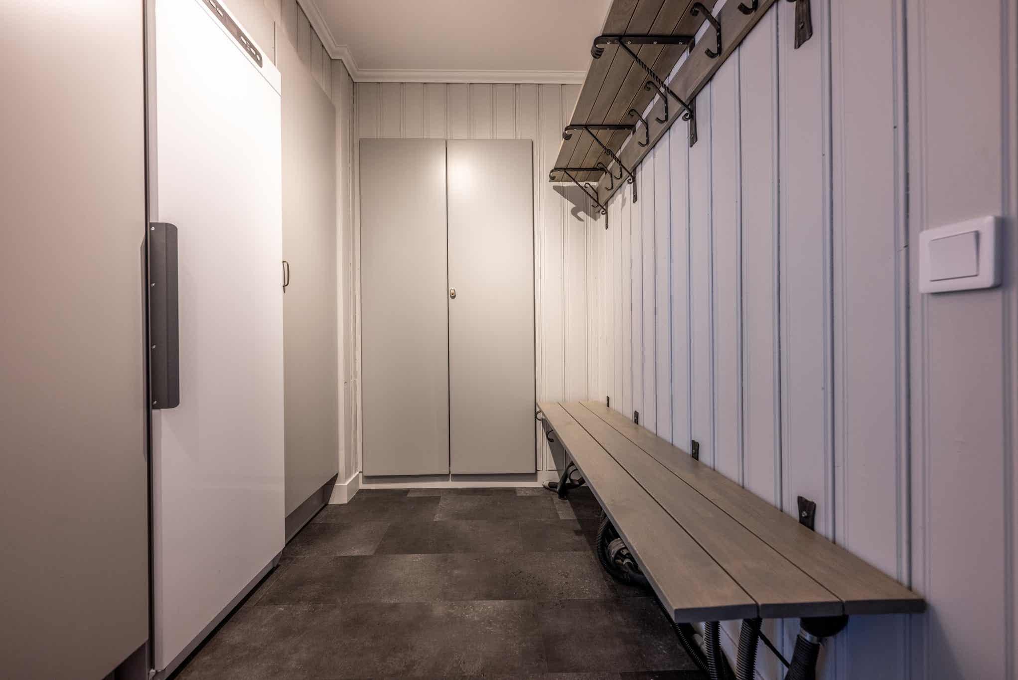 TV, droogkast, 1 kinderstoel, berging voor ski’s.