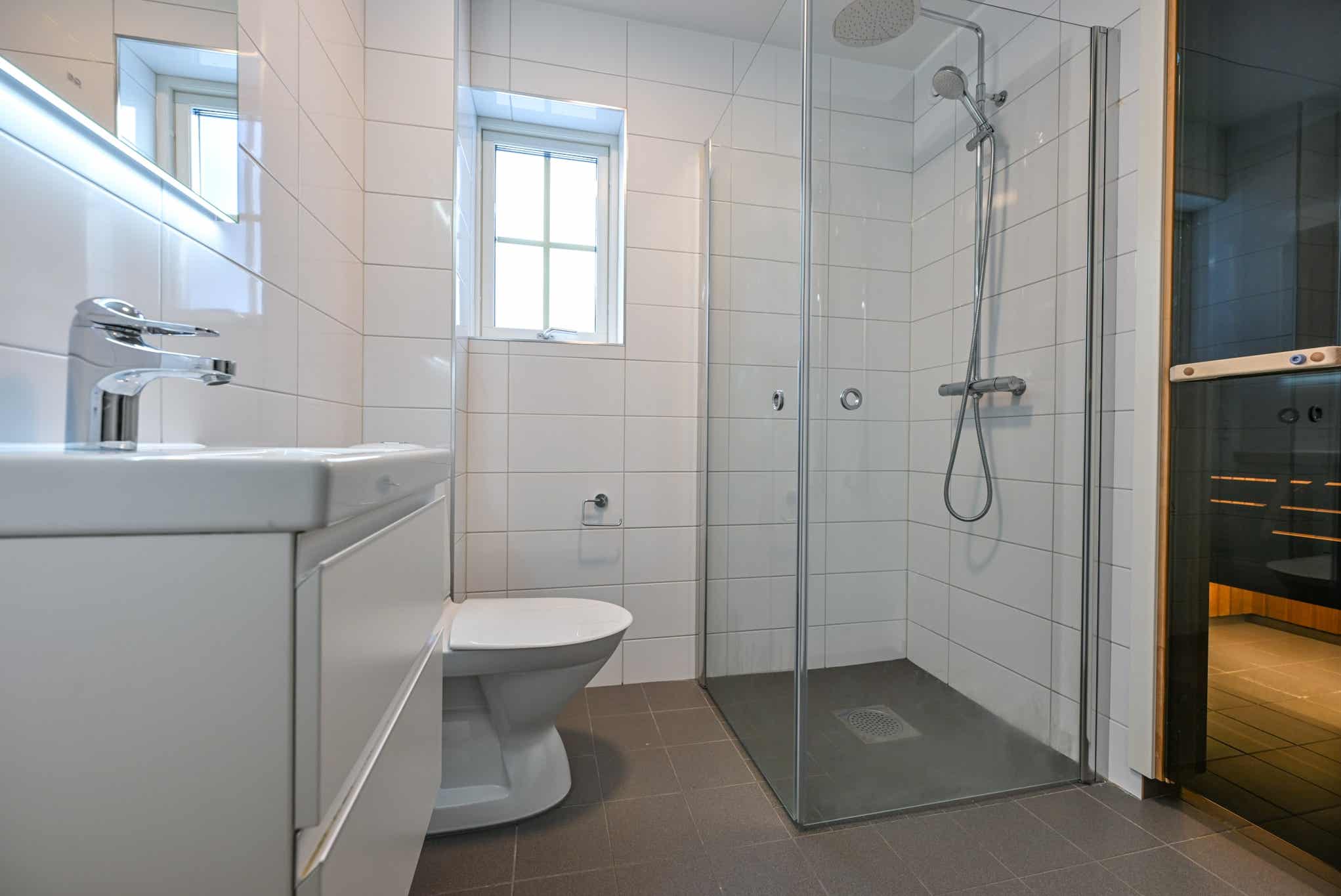 Badkamers:Badkamer 1: met douche/WC/sauna. Badkamer 2: met douche/WC.