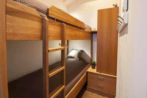 Slaapkamers:Slaapkamer-1 = 1 tweepersoonsbed. Slaapkamer-2 = 1 stapelbed. Slaapkamer-3 = 1 stapelbed met 120 cm breed onderbed en 90 cm breed bovenbed.