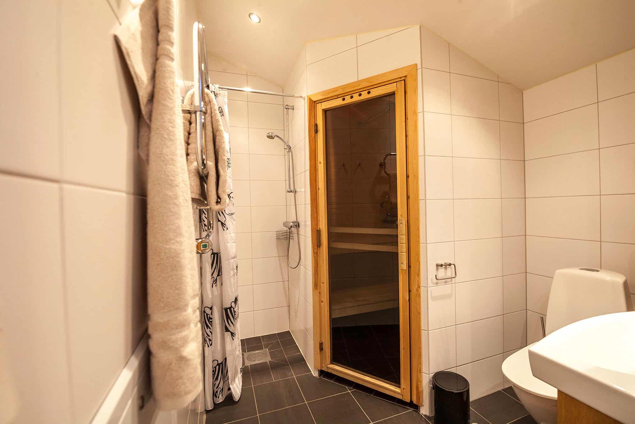 Badkamers:Badkamer 1: met douche/WC/sauna. Badkamer 2: met douche/WC.