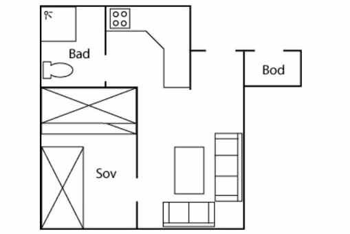 Appartement op de begane grond, 2+2 bedden, 30 m², woonkamer met gecombineerde keuken, 1 slaapkamers, 1 douche, 1 toilet.