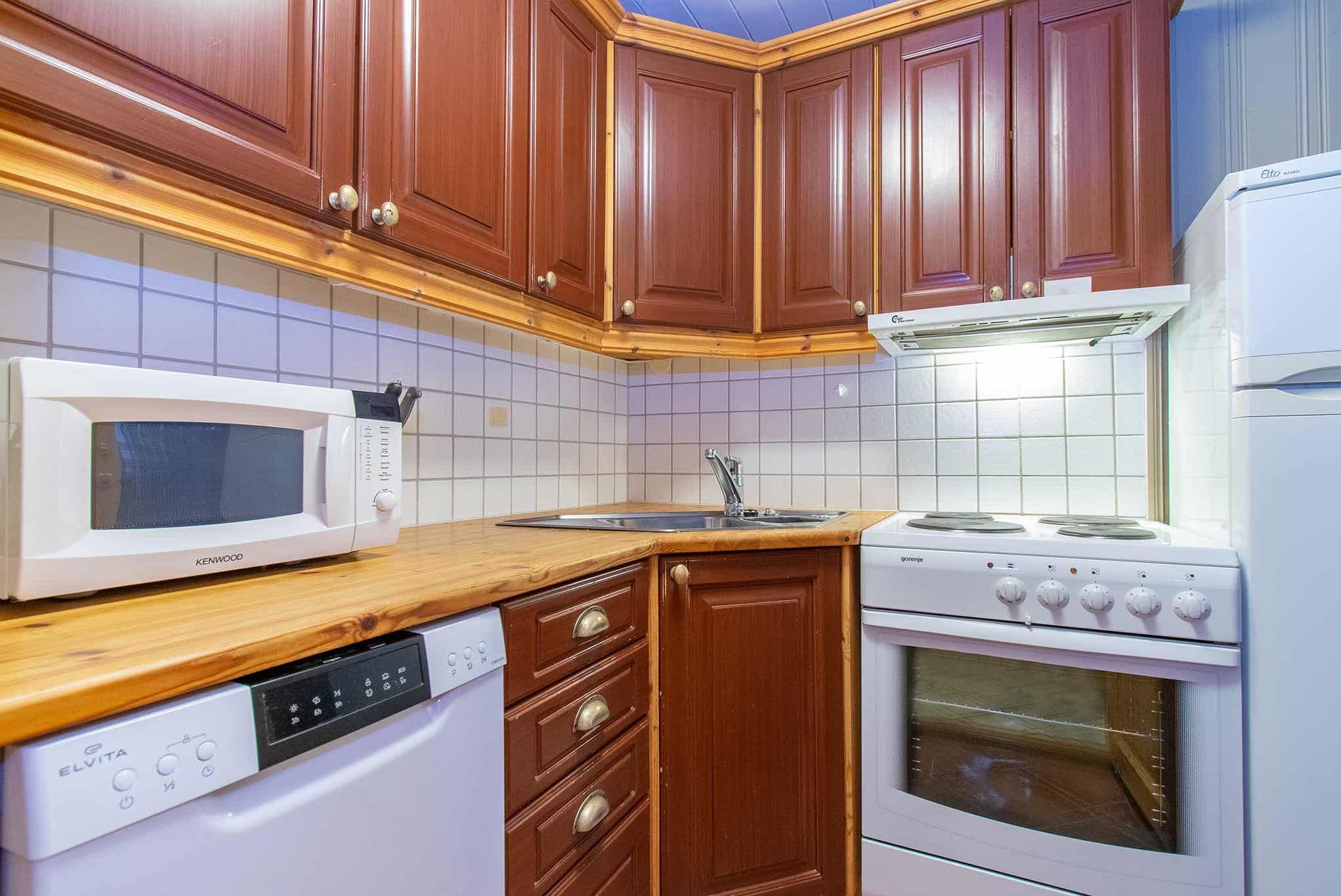 De unit heeft een magnetron, vaatwasser, koelkast, vriezer.