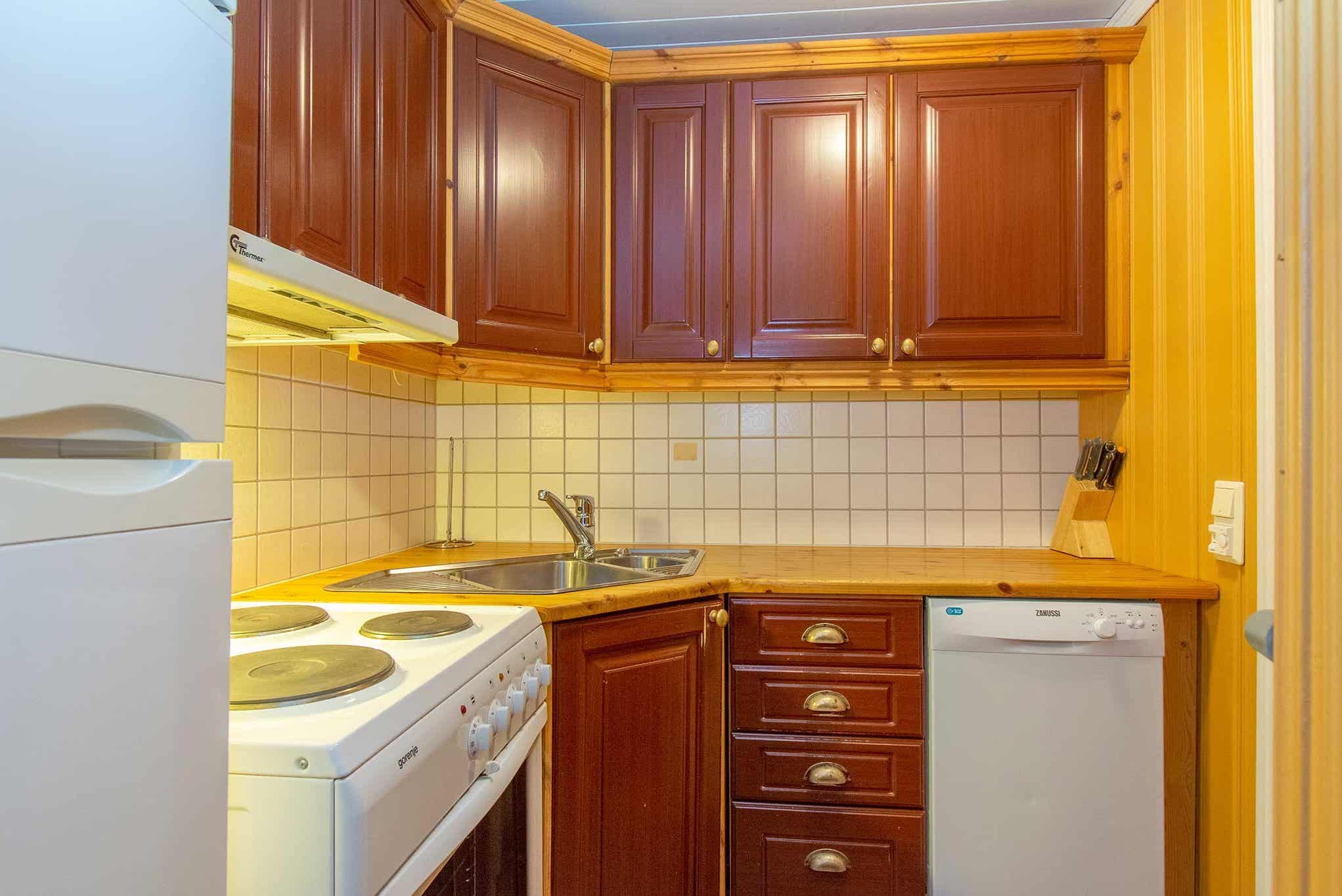 De unit heeft een magnetron, vaatwasser, koelkast, vriezer.