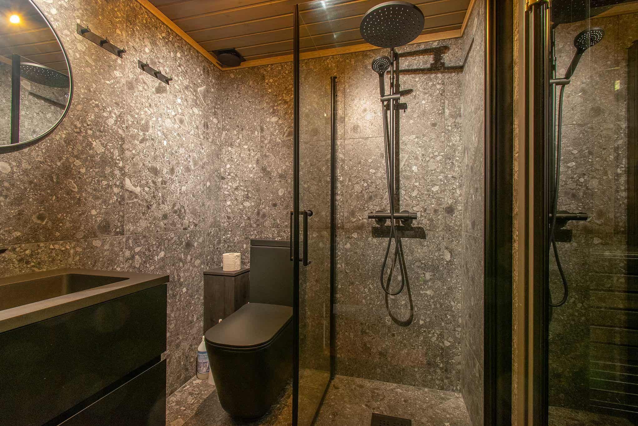 Badkamers:Badkamer 1: met douche, toilet en sauna.