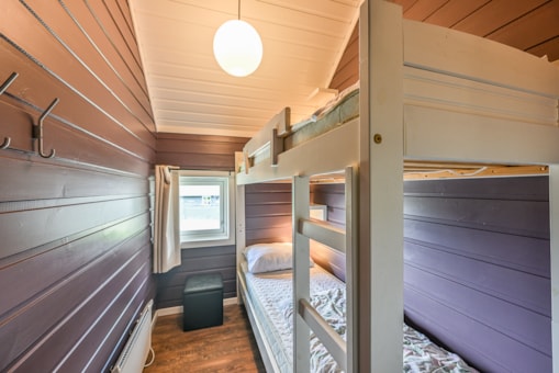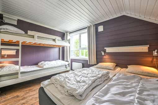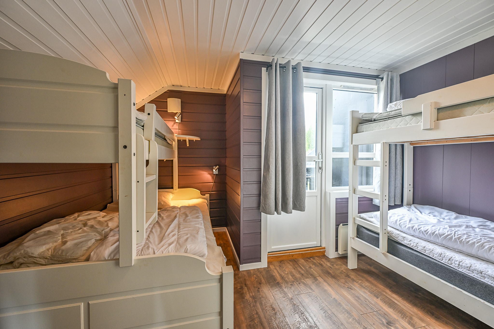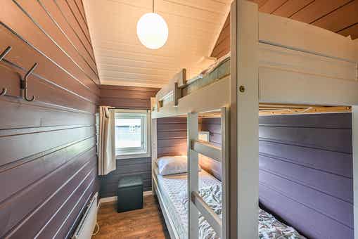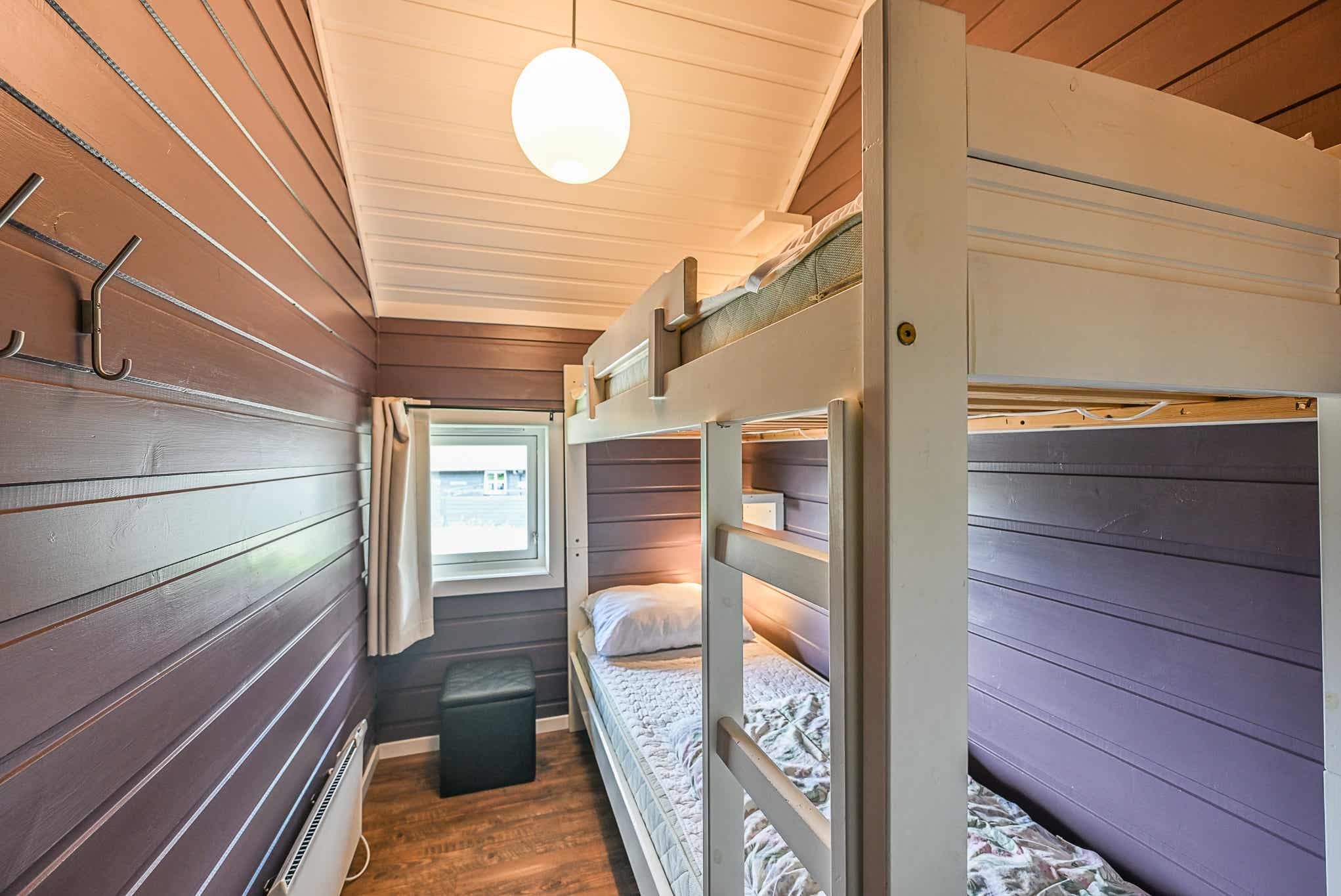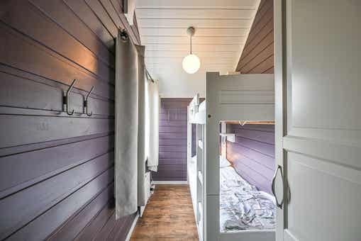 Slaapkamers:Slaapkamer 1= 1 tweepersoonsbed dat kan worden opgedeeld in twee eenpersoonsbedden, 1 stapelbed van 75 cm breed. Slaapkamer 2= 1 stapelbed met onderbed 120 cm breed en bovenbed 75 cm breed, 1 stapelbed 75 cm breed. Slaapkamer 3= 1 stapelbed van 75 cm breed. Slaapkamer 4= 1 stapelbed 75 cm breed.