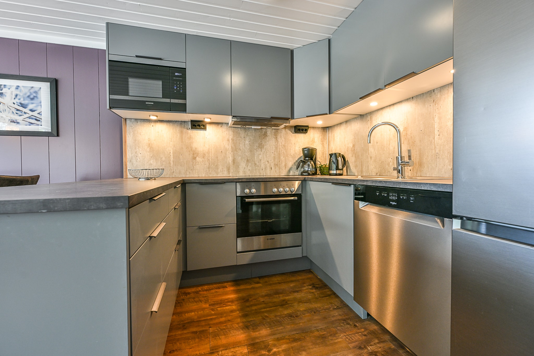 De unit is voorzien van koelkast, vriezer, vaatwasser, magnetron.