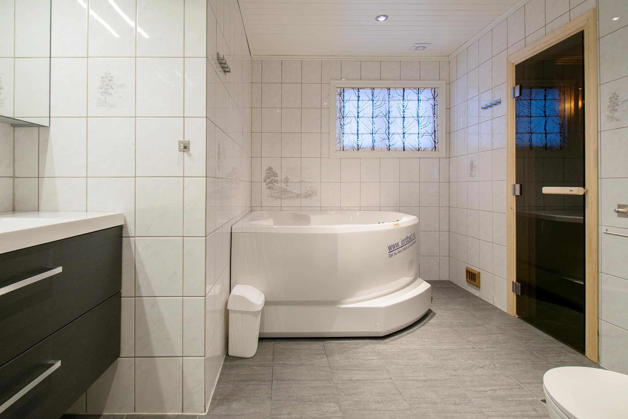Badkamers:Badkamer 1: met douche, toilet, sauna en bubbelbad. Badkamer 2: met douche en toilet. Badkamer 3: met toilet.