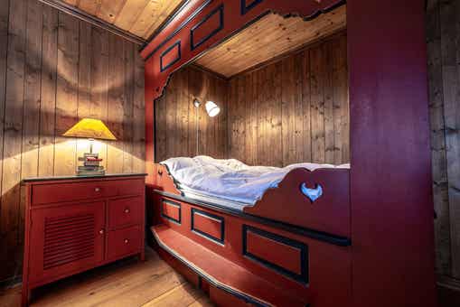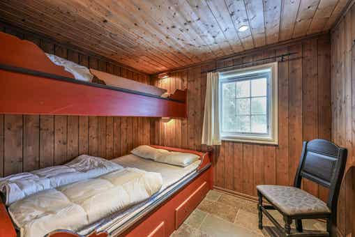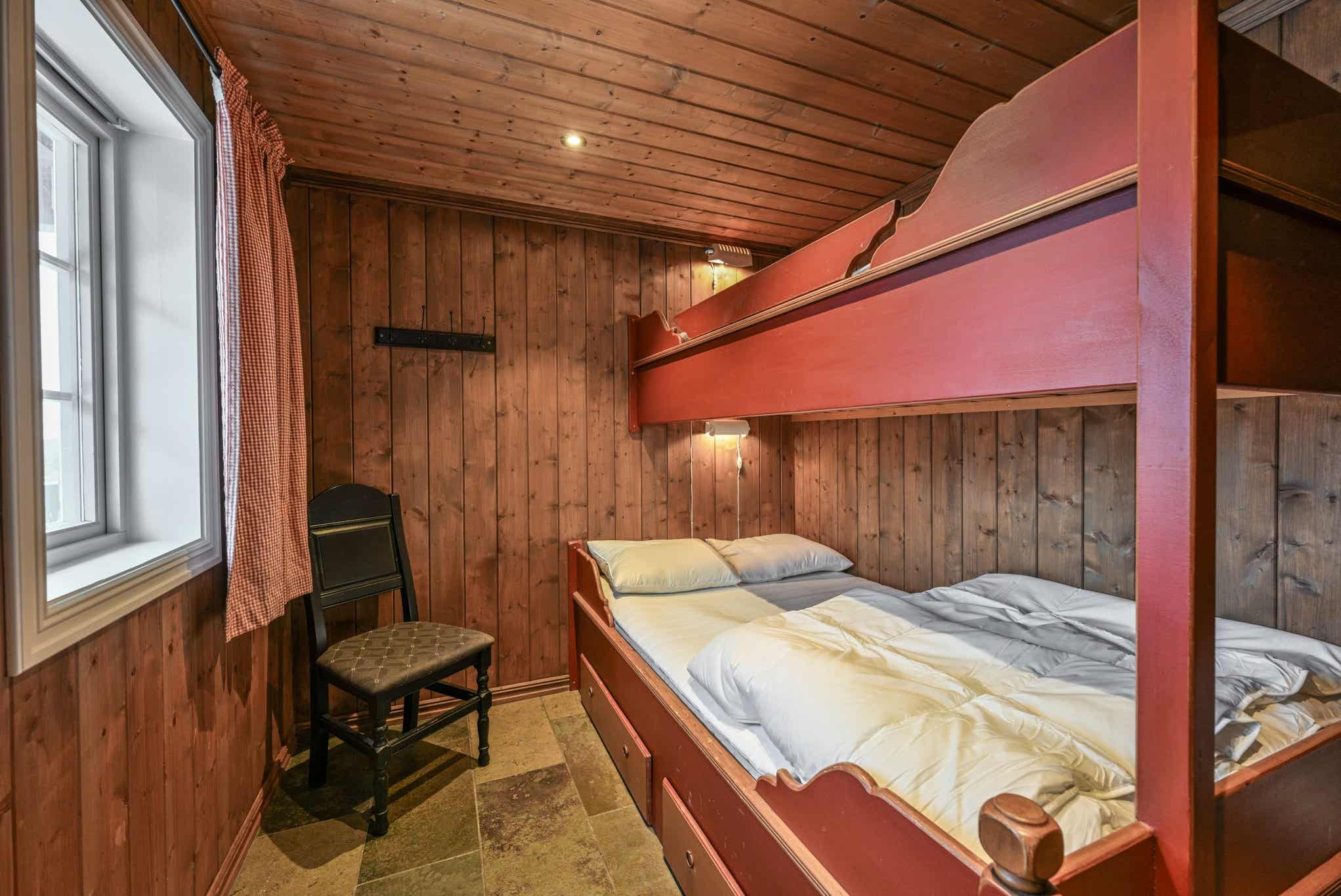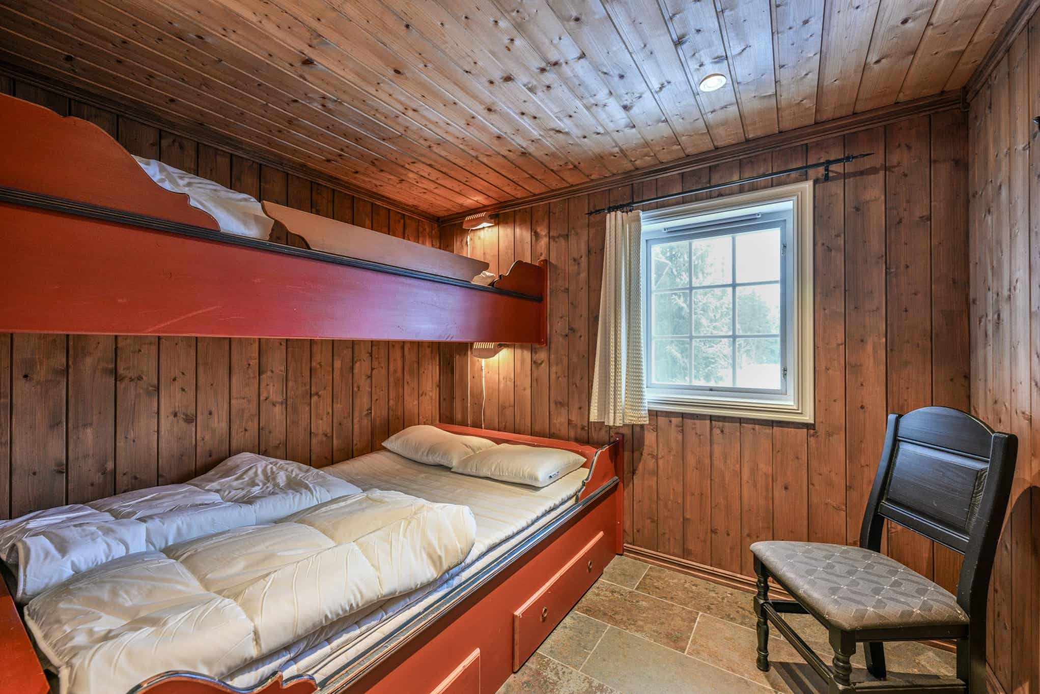 Slaapkamers:Slaapkamer 1= 1 tweepersoonsbed 160 cm breed. Slaapkamer 2= 1 tweepersoonsbed 160 cm breed. Slaapkamer 3= 1 tweepersoonsbed 150 cm breed. Slaapkamer 4= 1 stapelbed met 140 cm breed onderbed en 90 cm breed bovenbed. Slaapkamer 5= 1 stapelbed met 120 cm breed onderbed en 80 cm breed bovenbed. Slaapkamer 6= 2 stapelbedden 75 cm breed.