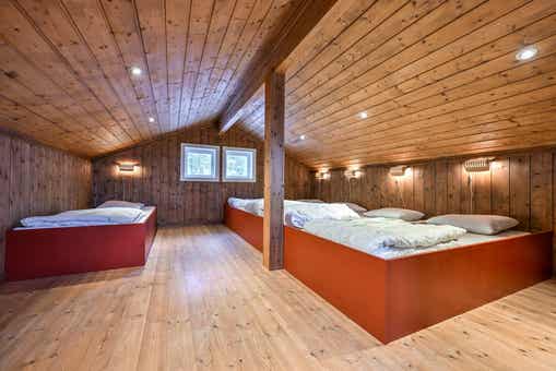Loft 1= 5 eenpersoonsbedden. Zolder 2= 1 eenpersoonsbed.