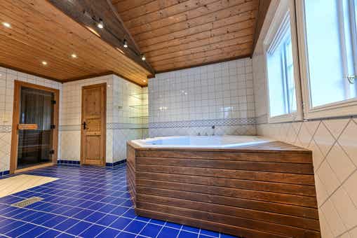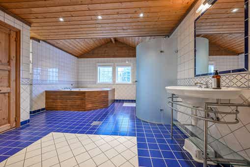 Badkamers:Badkamer 1: met douche, toilet, sauna en bubbelbad. Badkamer 2: met douche en toilet. Badkamer 3: met douche en toilet. Badkamer 4: met toilet.