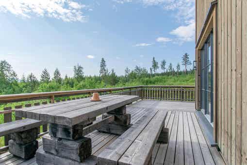 Vrijstaand huisje op twee verdiepingen, 8+2 bedden, 120 m², woonkamer met gecombineerde keuken, 4 slaapkamers, 2 douches, 2 toiletten, 1 sauna.