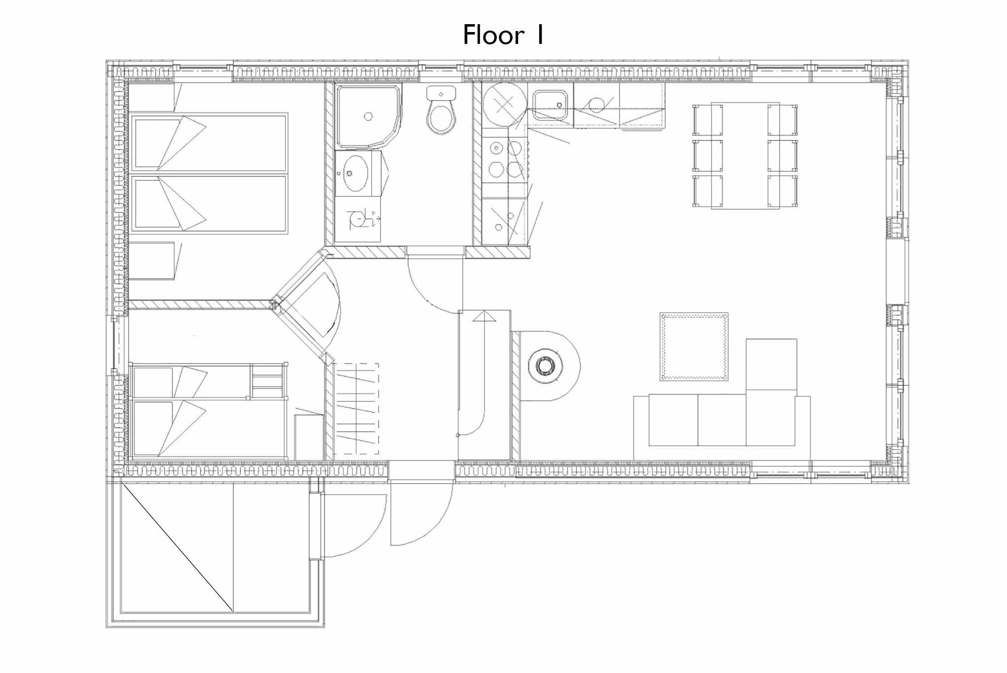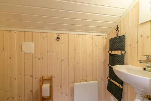 Vrijstaand huisje, 7+1 bedden, 65 m², woonkamer met gecombineerde keuken, 3 slaapkamers, 1 douche, 2 WC.