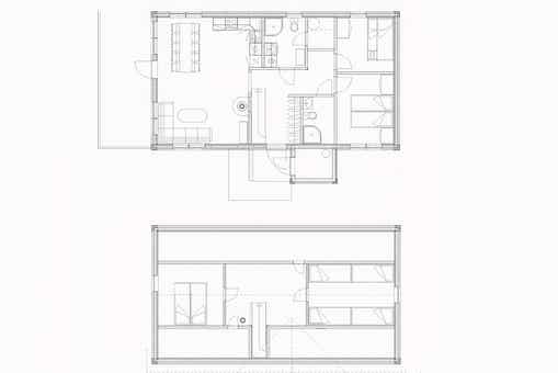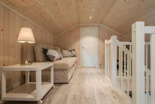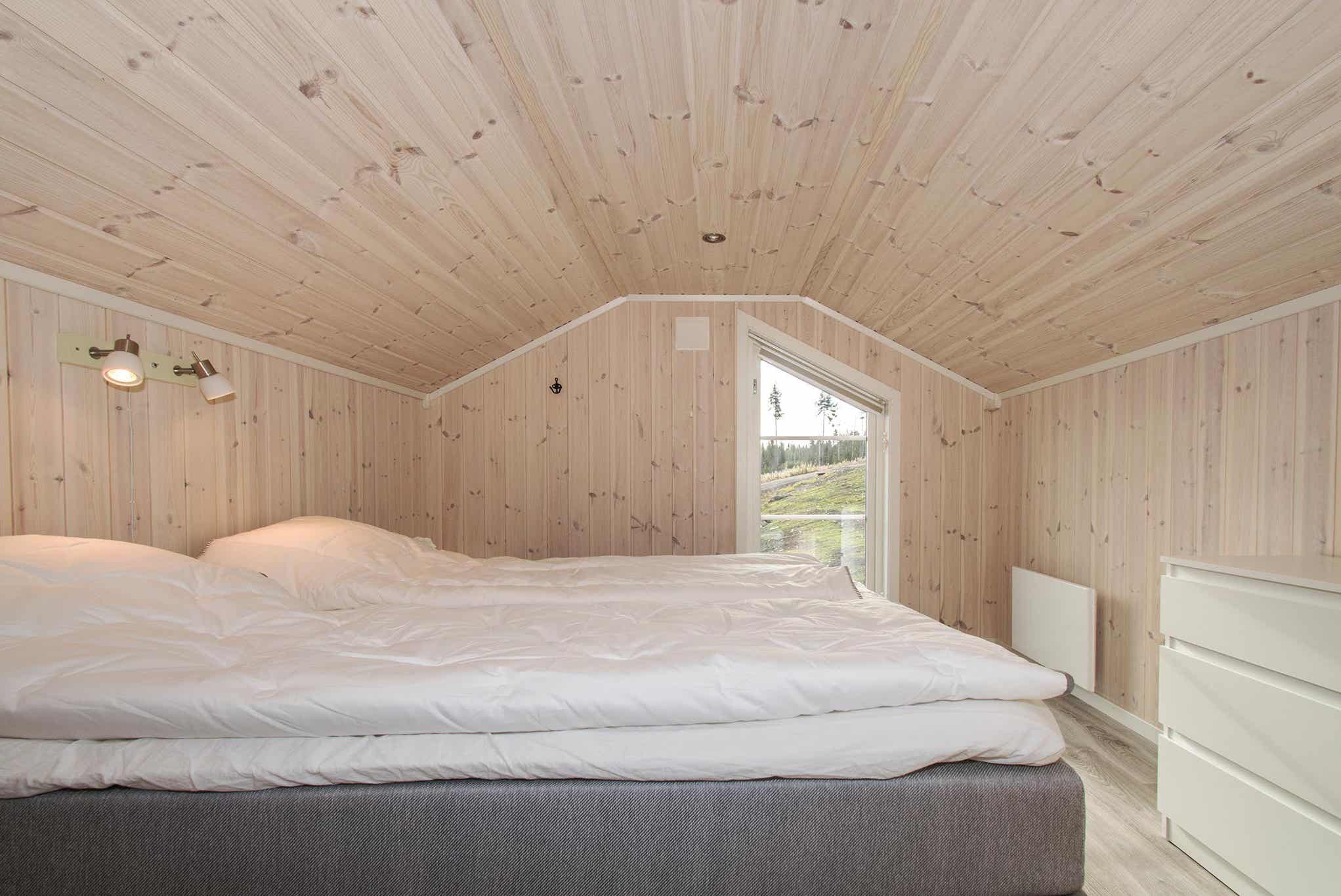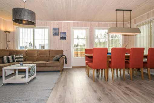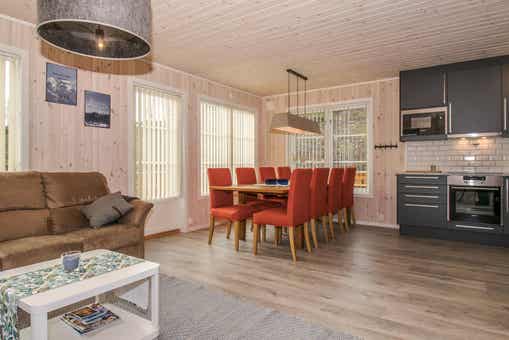 Vrijstaand huisje met vide, 9 bedden, 75 m², woonkamer met gecombineerde keuken, 4 slaapkamers, 2 douches, 2 toiletten, 1 sauna.