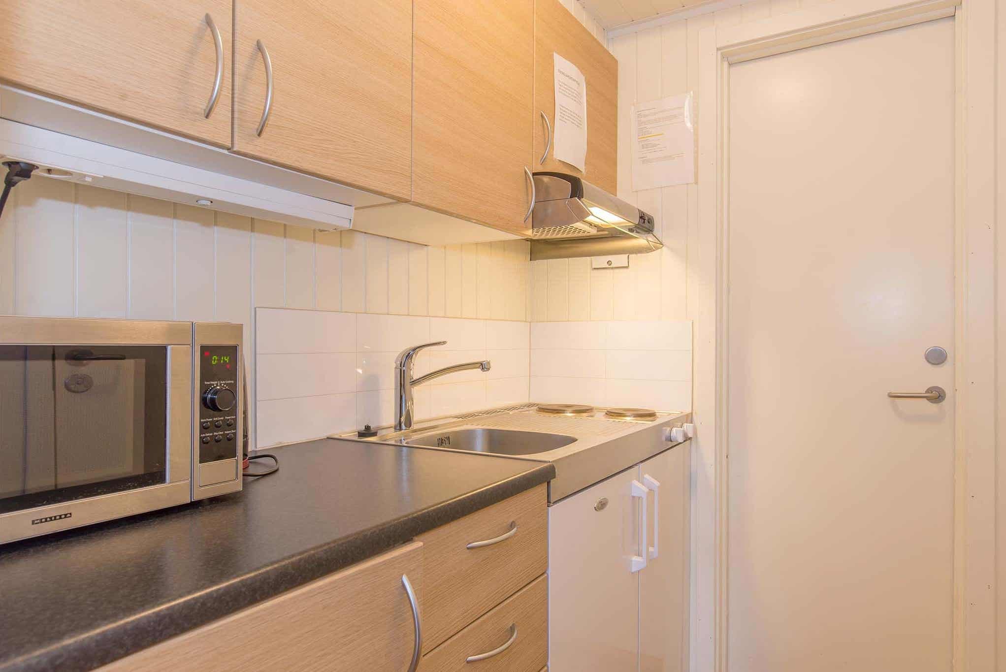 De unit heeft alleen kookplaten, geen oven, koelkast, magnetron, er is geen eethoek.