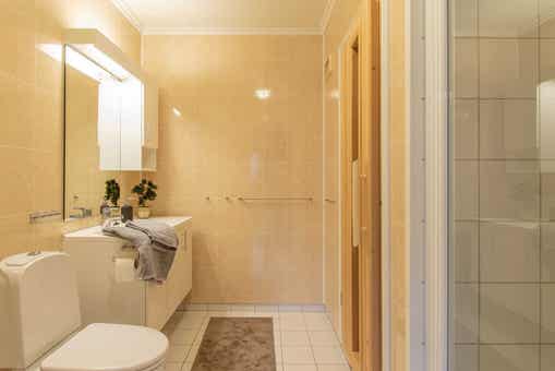 Badkamers:Badkamer 1: met douche, toilet en sauna.