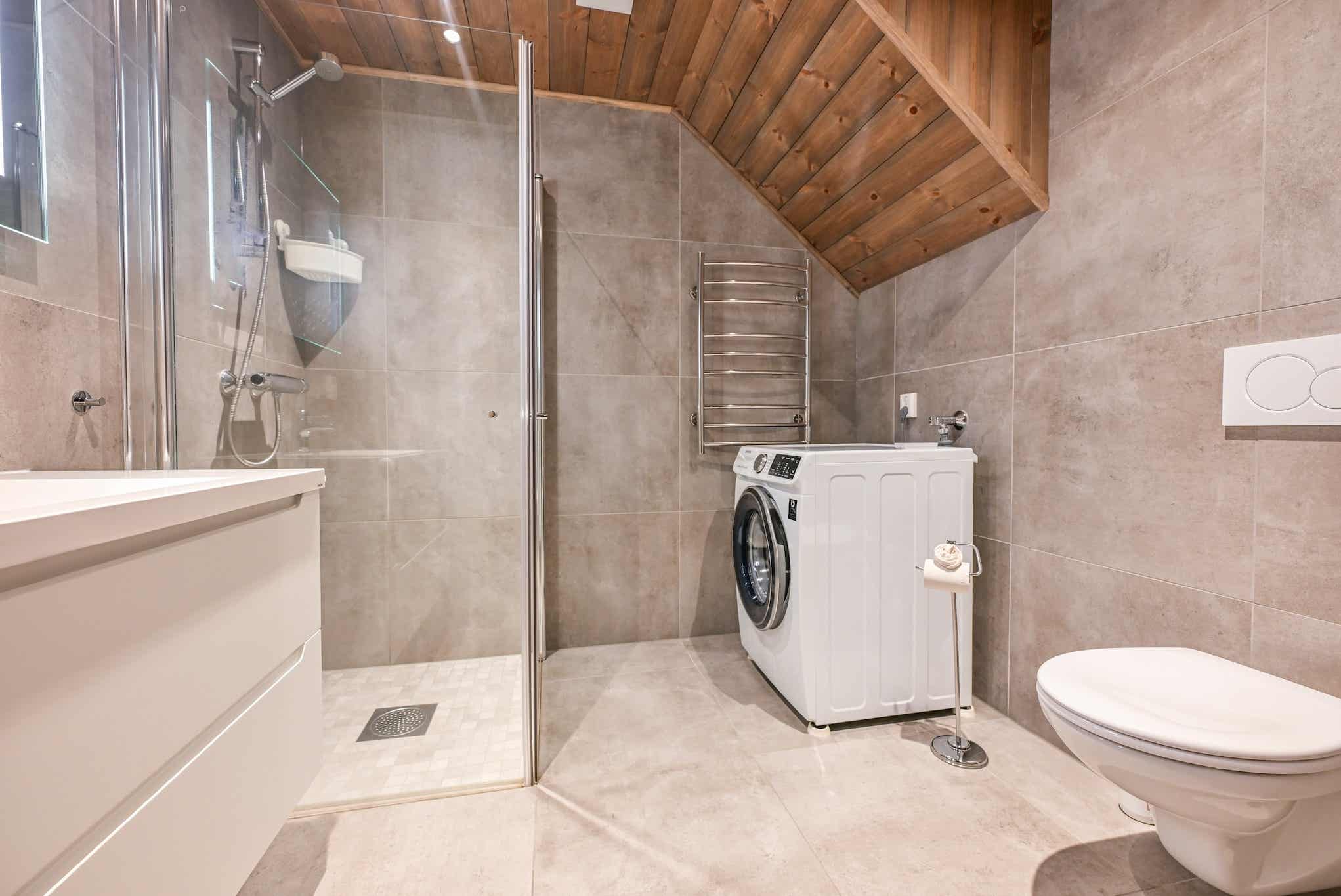 wasmachine, skiberging, 2 parkeerplaatsen in garage.