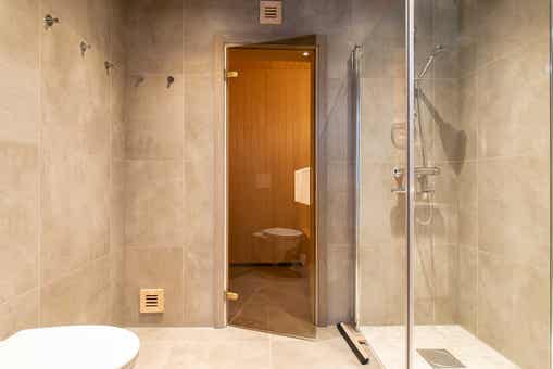 Badkamers:Badkamer 1: met douche, toilet en sauna. Badkamer 2: met douche en toilet.