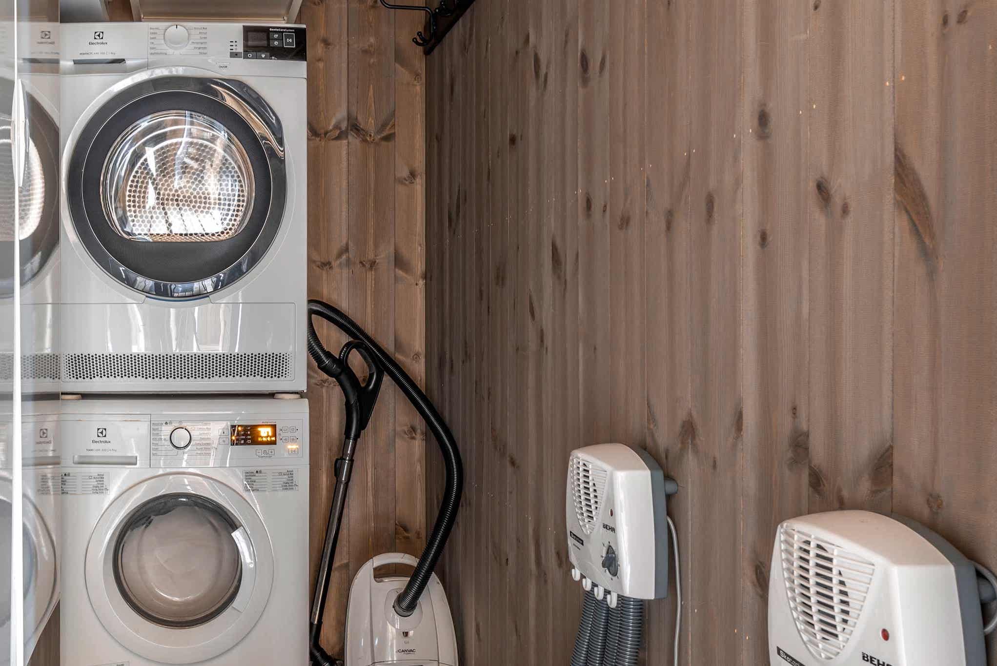 wasmachine, wasdroger, schoenendroogkast, skiberging, 2 plaatsen in de garage.