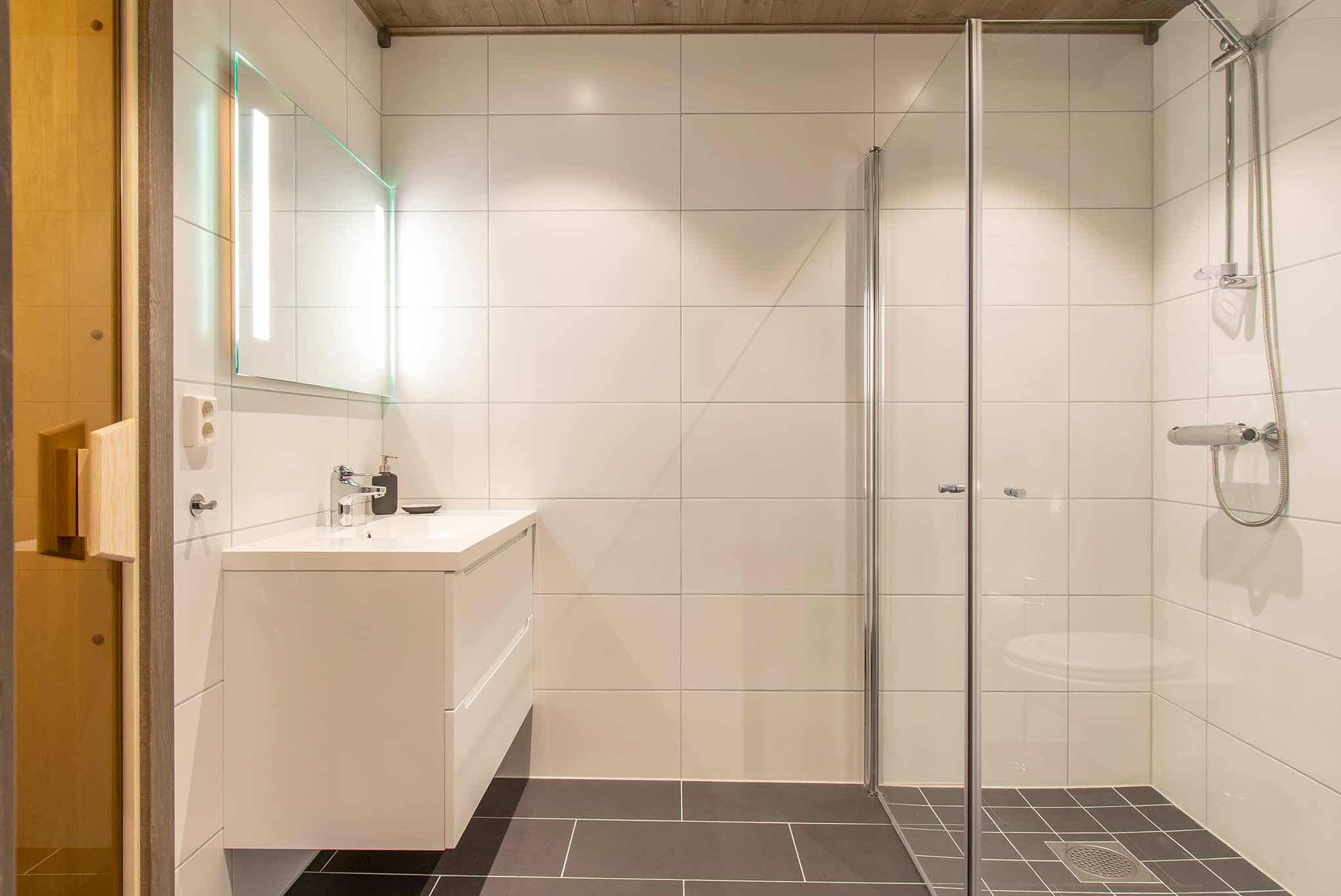Badkamers:Badkamer 1: met douche, toilet en sauna.