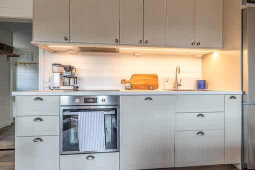 De keuken is voorzien van fornuis met oven, koelkast, vriezer, vaatwasser, magnetron.