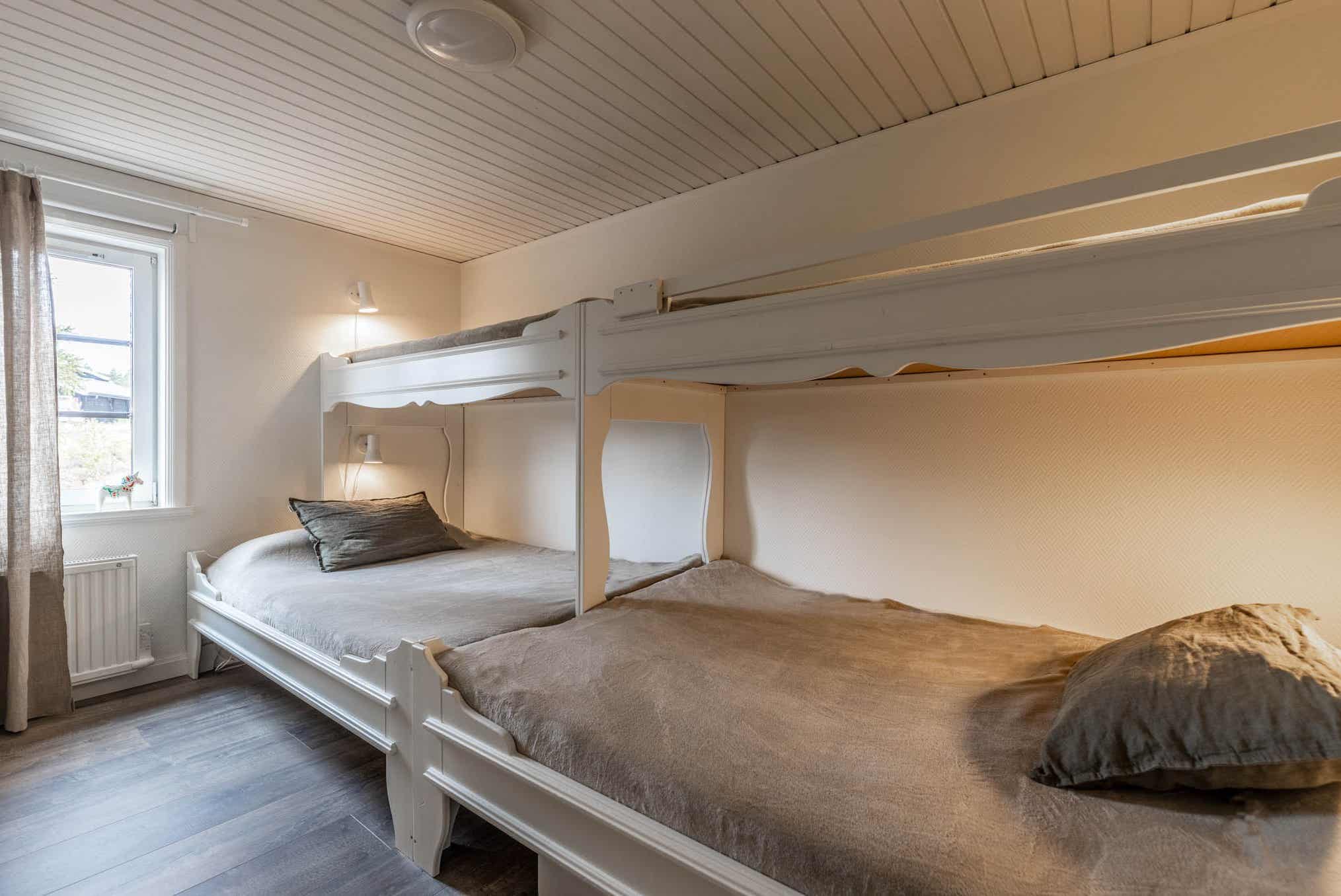 Slaapkamers:Slaapkamer-1 = 1 tweepersoonsbed. Slaapkamer-2 = 2 stapelbedden met 140 cm breed onderbed.