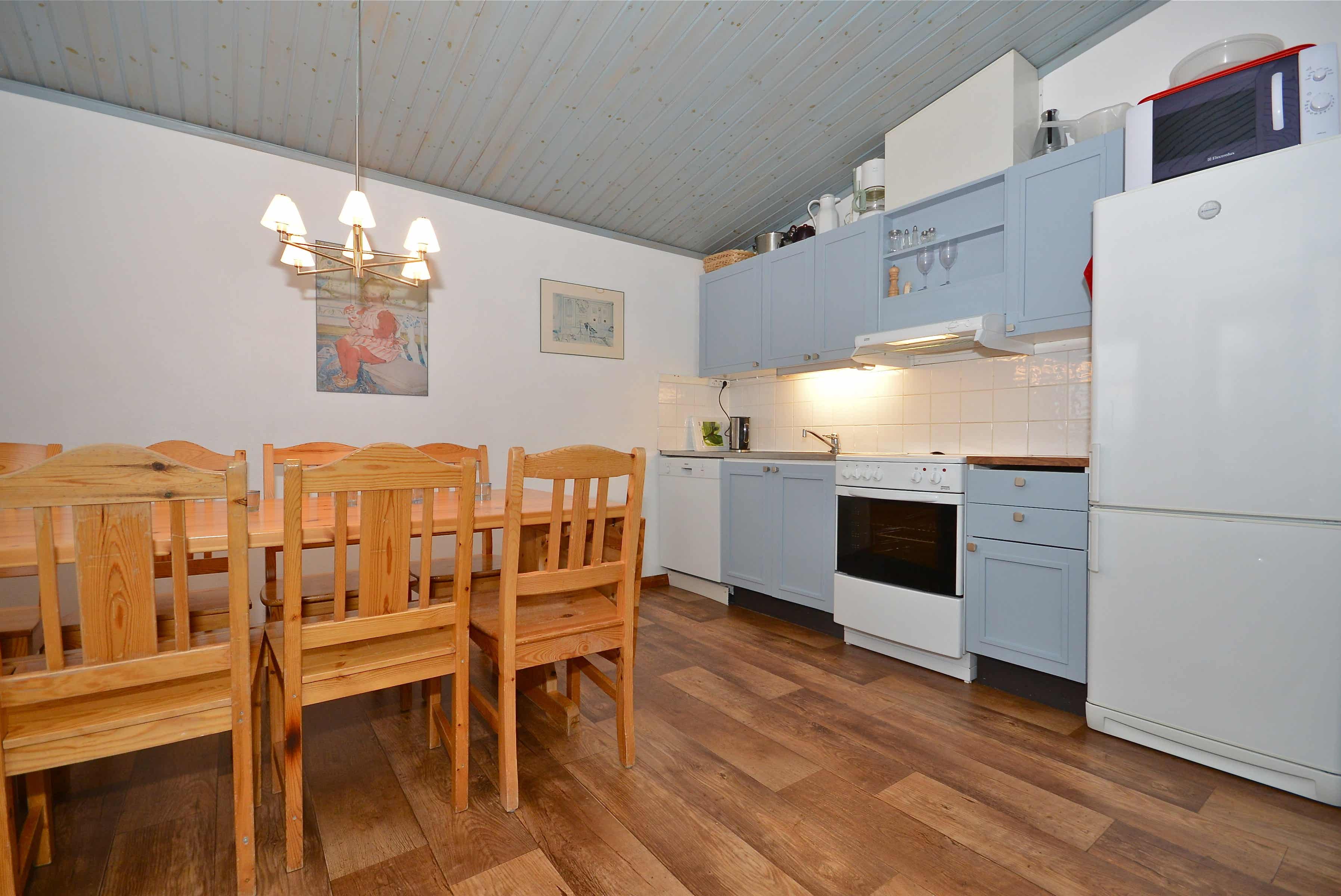 De keuken is voorzien van fornuis met oven, koelkast, vriezer, vaatwasser, magnetron.