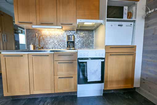 De keuken is voorzien van fornuis met oven, koelkast, vriezer, magnetron, vaatwasser.