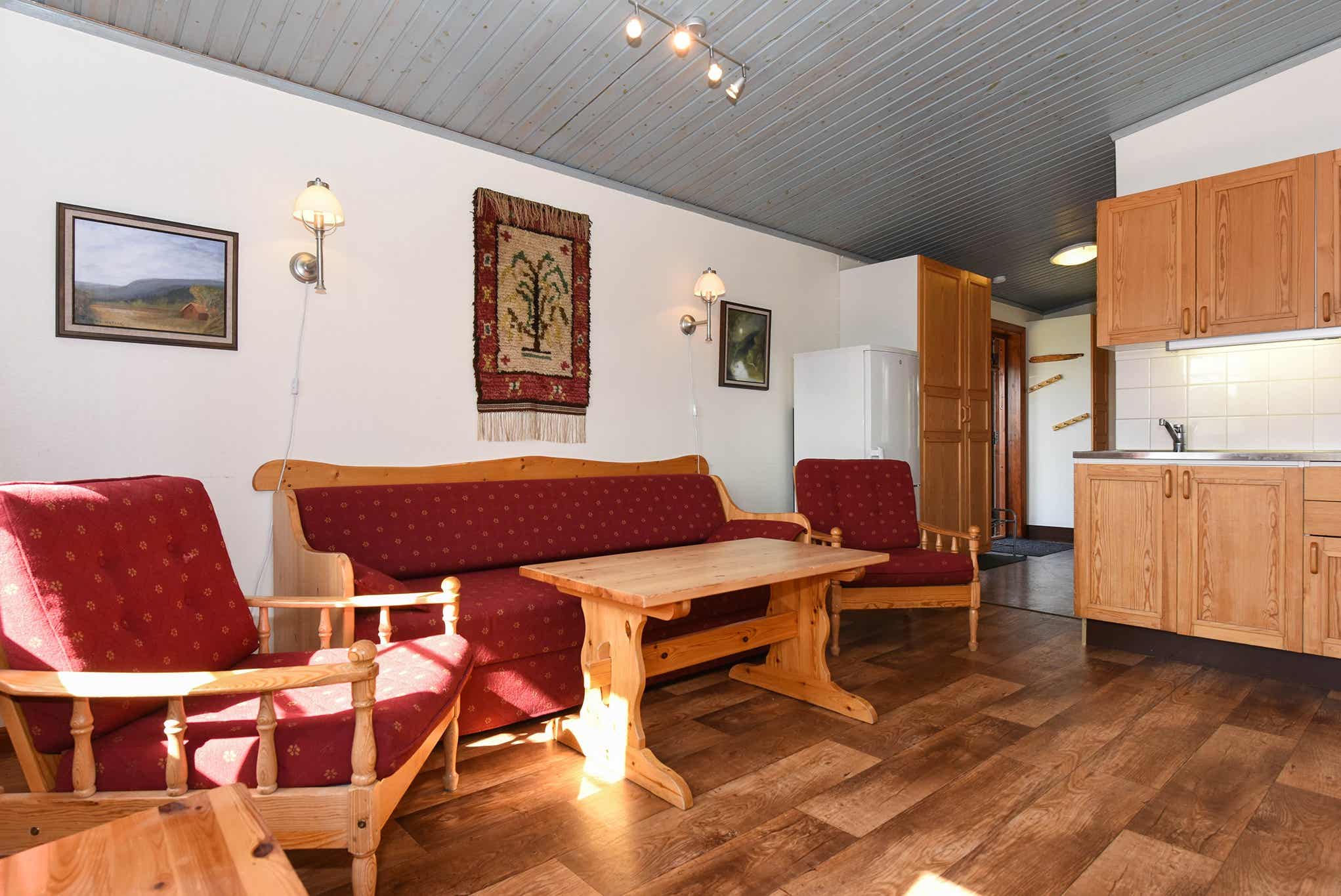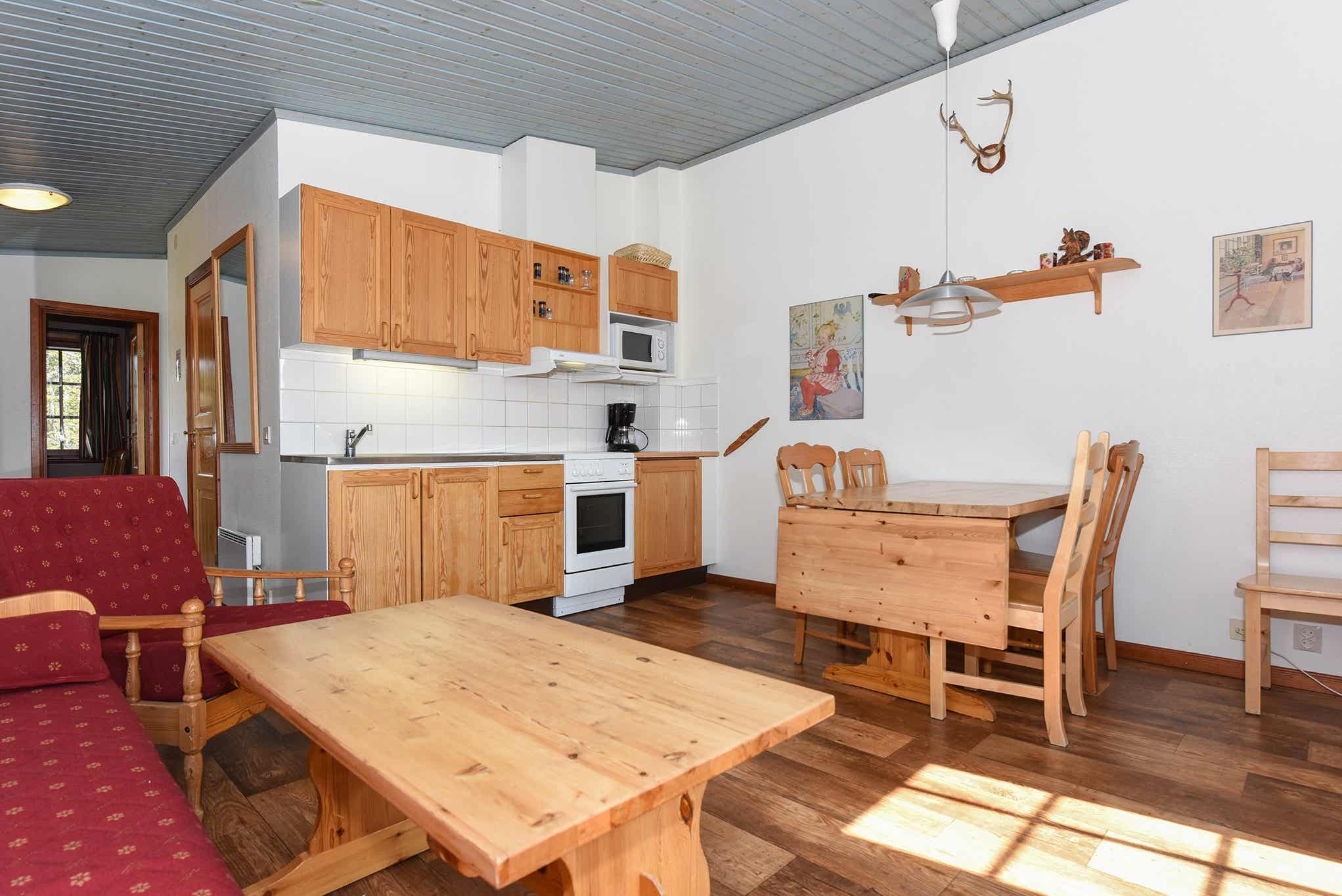 Högfjällsbyn bevindt zich in Högfjället. Appartement op de tweede verdieping, 4+1 bedden, 42 m², woonkamer met gecombineerde keuken, 2 slaapkamers, 1 douche, 1 toilet, sauna.