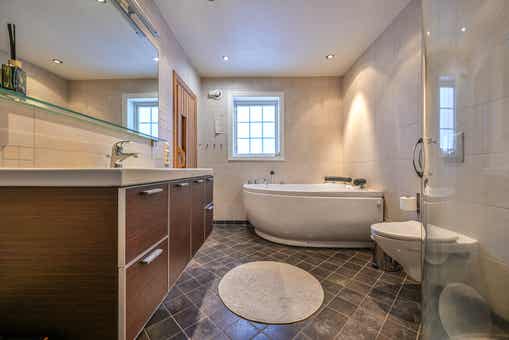Badkamers:Badkamer 1: met douche en toilet. Badkamer 2: met douche, toilet, sauna en bubbelbad. Badkamer 3: met toilet.