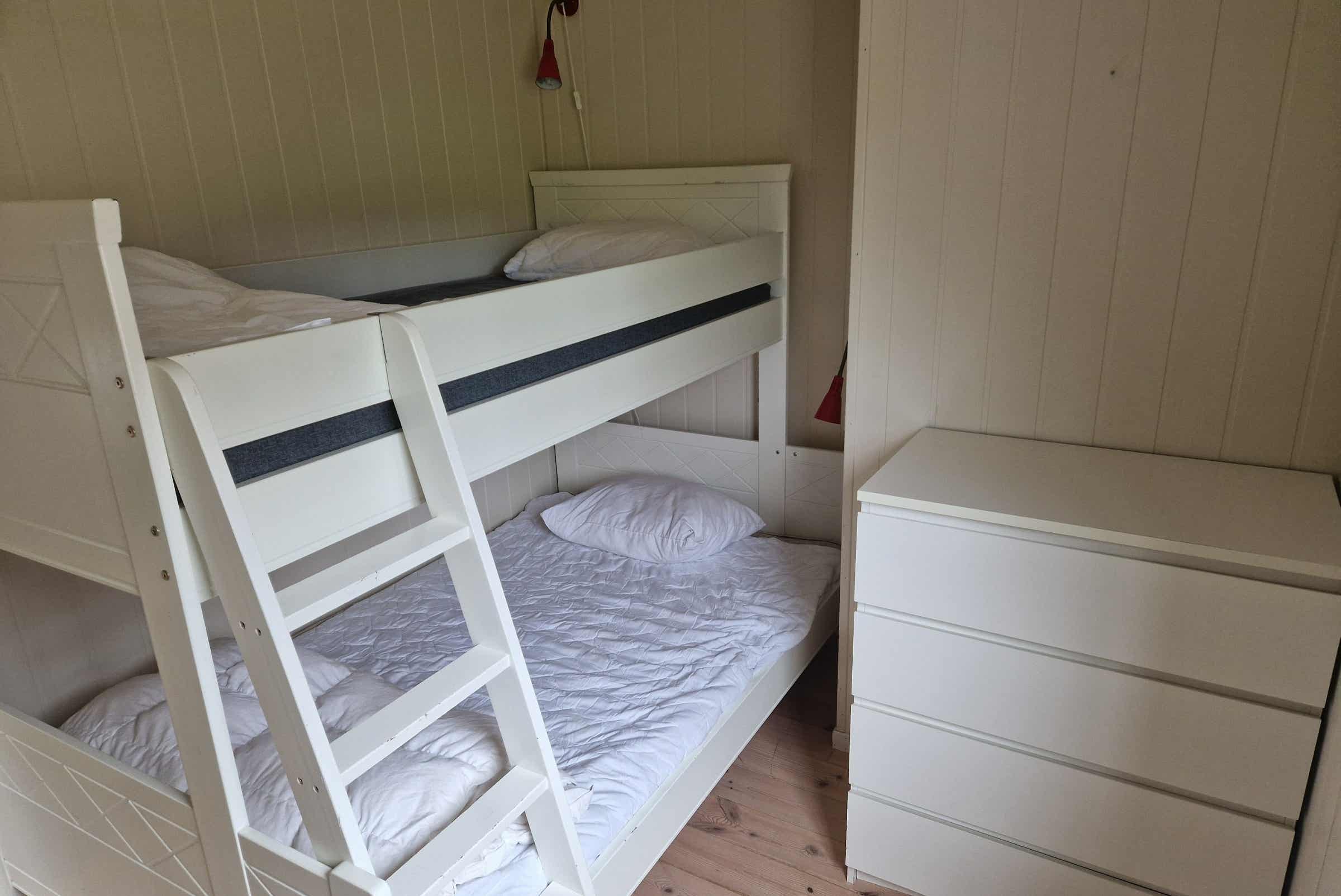 Slaapkamers:Slaapkamer 1= 1 tweepersoonsbed 180 cm breed. Slaapkamer 2= 2 stapelbedden. Slaapkamer 3= 1 stapelbed met 120 cm breed onderbed.