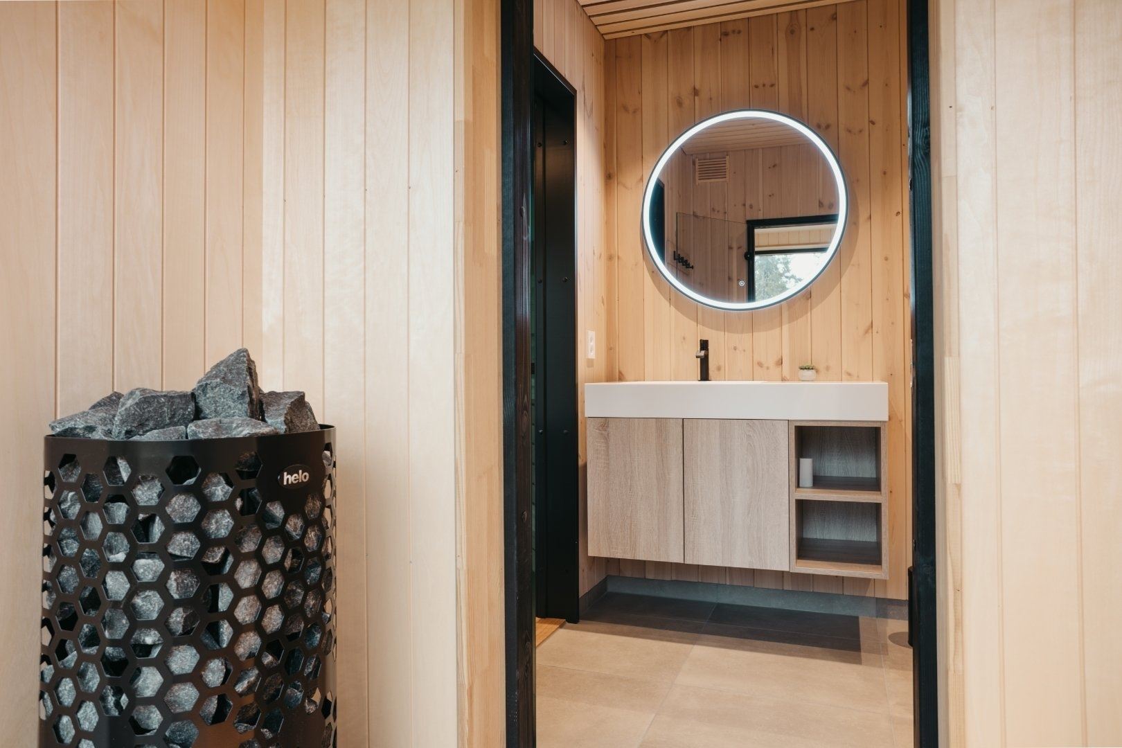 Badkamer 1: Douche, wastafel, toilet en sauna