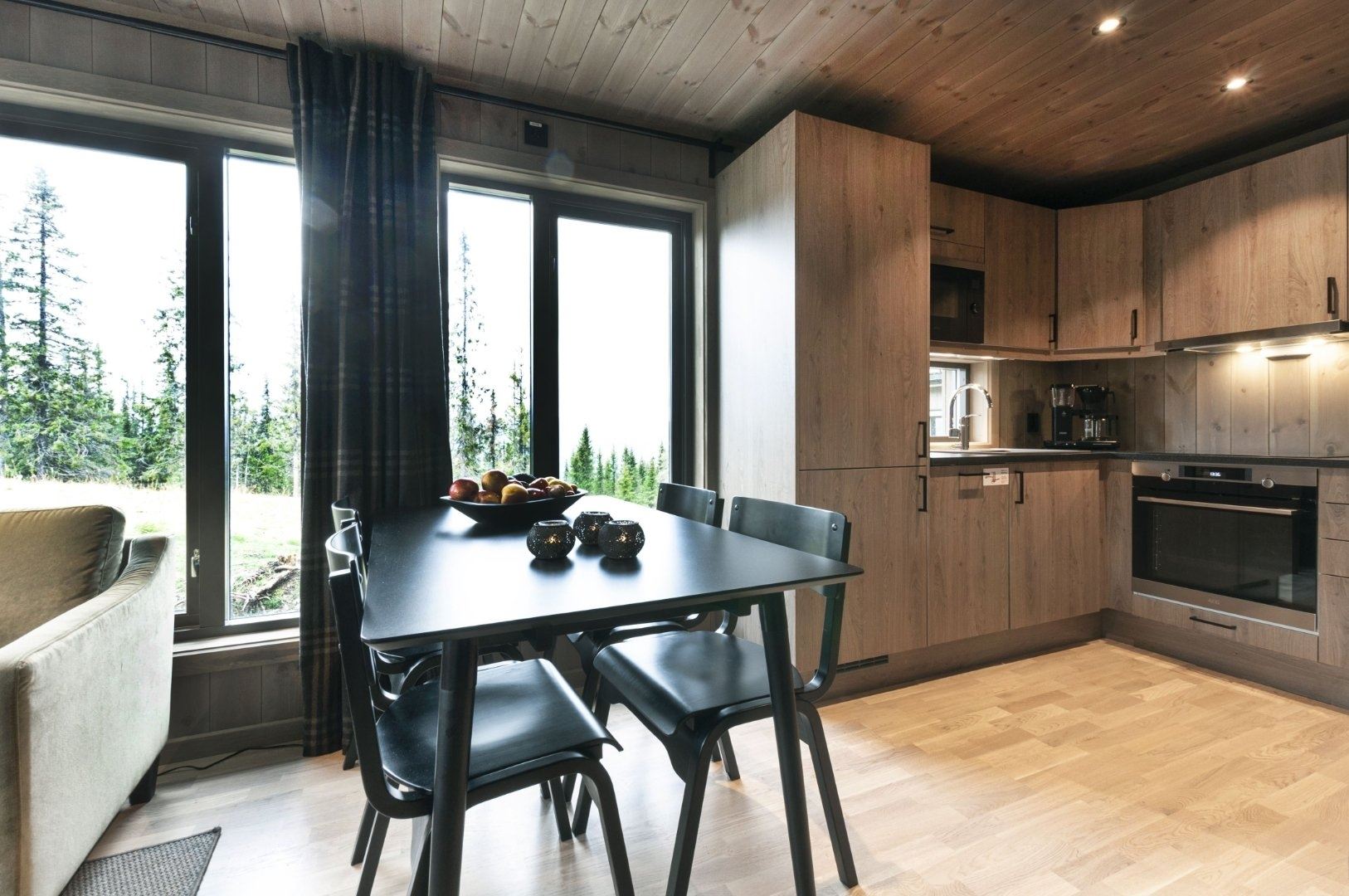 Het bijgebouw Varden Fjellandsby biedt alles wat u nodig heeft voor een ontspannen verblijf. De keuken is voorzien van een kookplaat, koelkast, vriezer, magnetron, vaatwasser en koffiezetapparaat. Eethoek voor 4 personen, ideaal om samen te genieten van de maaltijd. Na een dag vol activiteiten kunt u heerlijk ontspannen in de woonkamer, die is ingericht met een bank, tv en een warme open haard; ideaal voor gezellige avonden bij het haardvuur.
