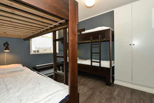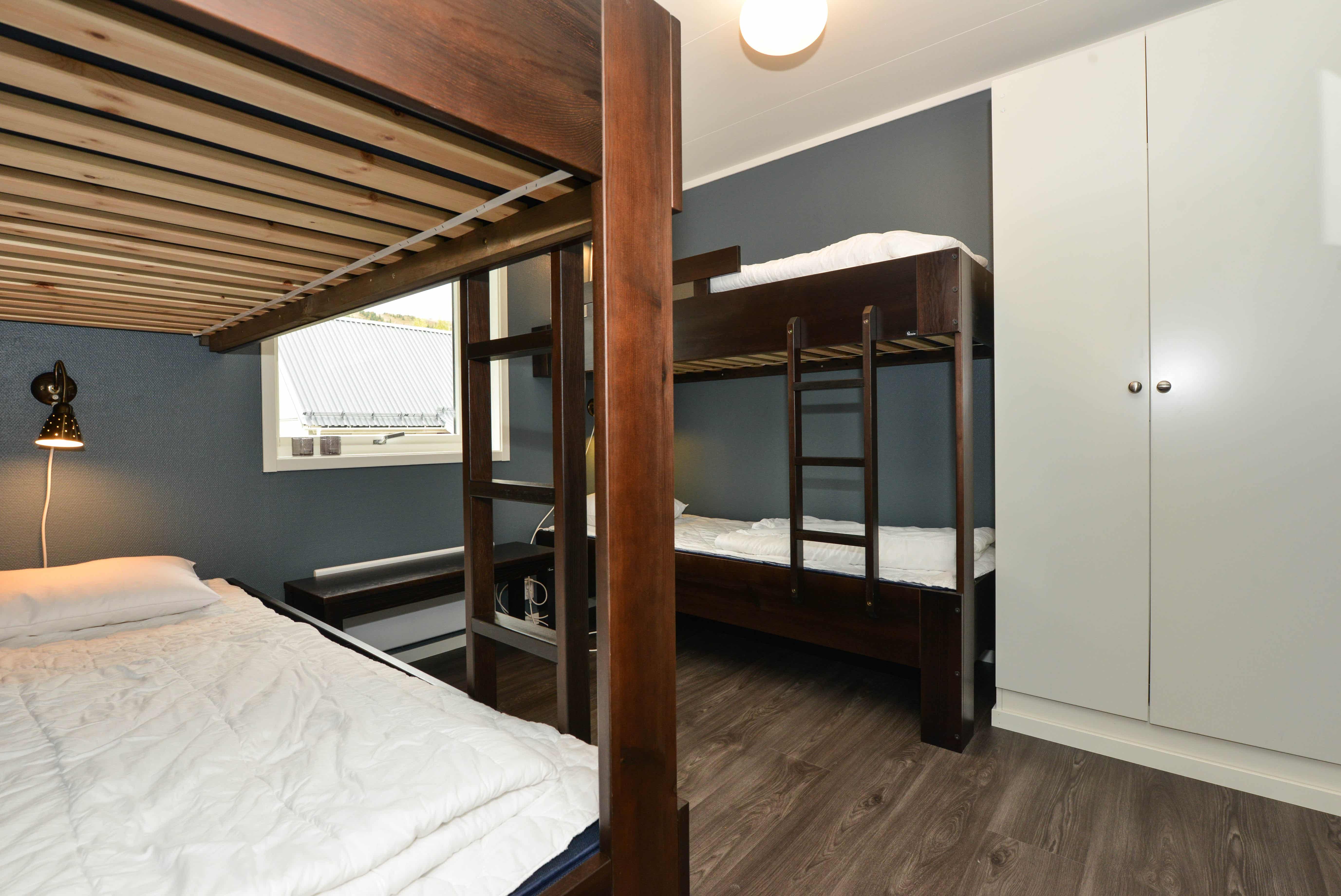 Slaapkamers:Slaapkamer-1 = 1 tweepersoonsbed. Slaapkamer-2 = 2 stapelbedden. Slaapkamer-3 = 1 stapelbed, 1 stapelbed met breed onderbed.
