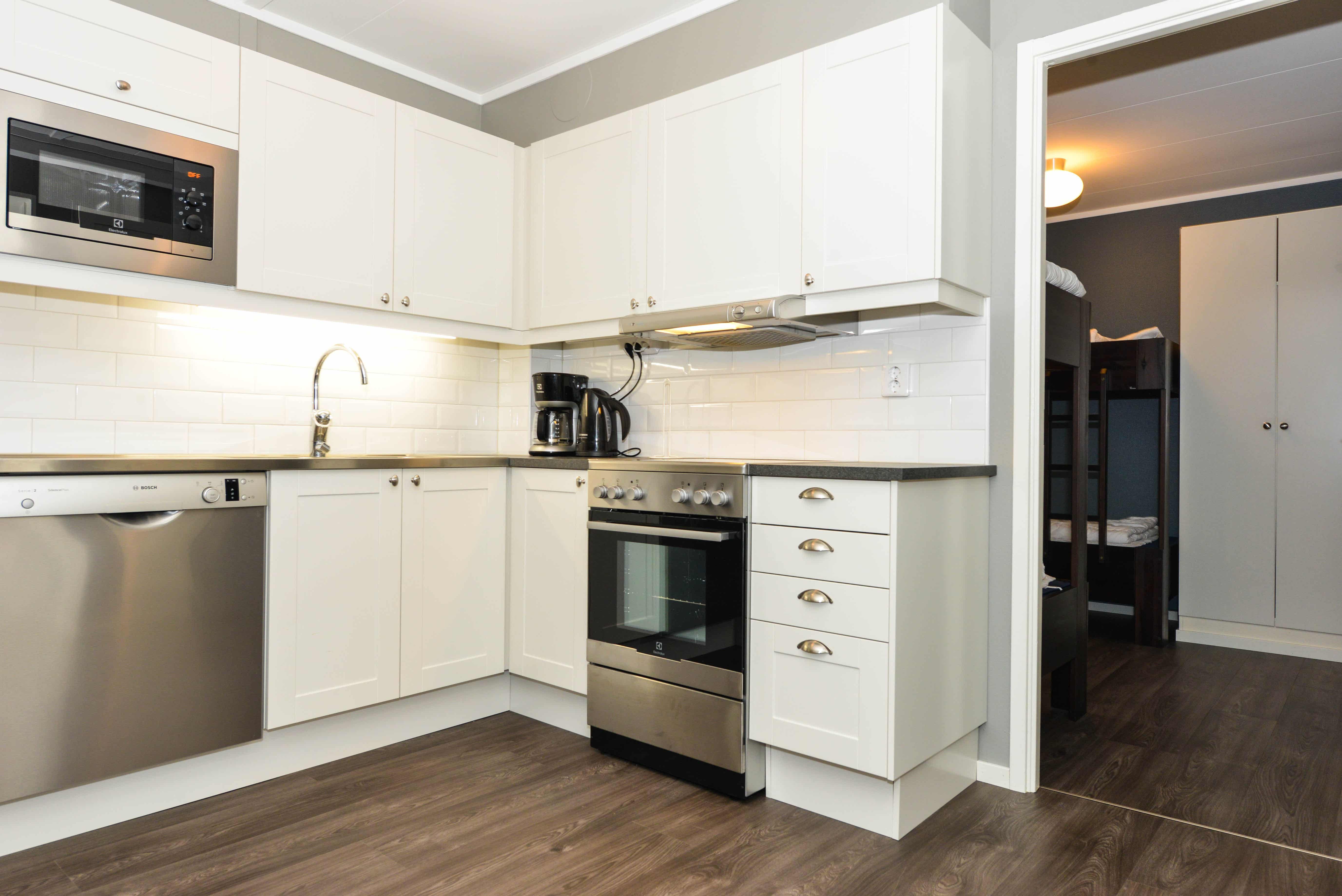 De keuken is voorzien van fornuis met oven, koelkast, vriezer, magnetron, vaatwasser.