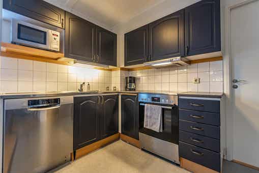 De keuken is voorzien van fornuis met oven, koelkast, vriezer, magnetron, vaatwasser.