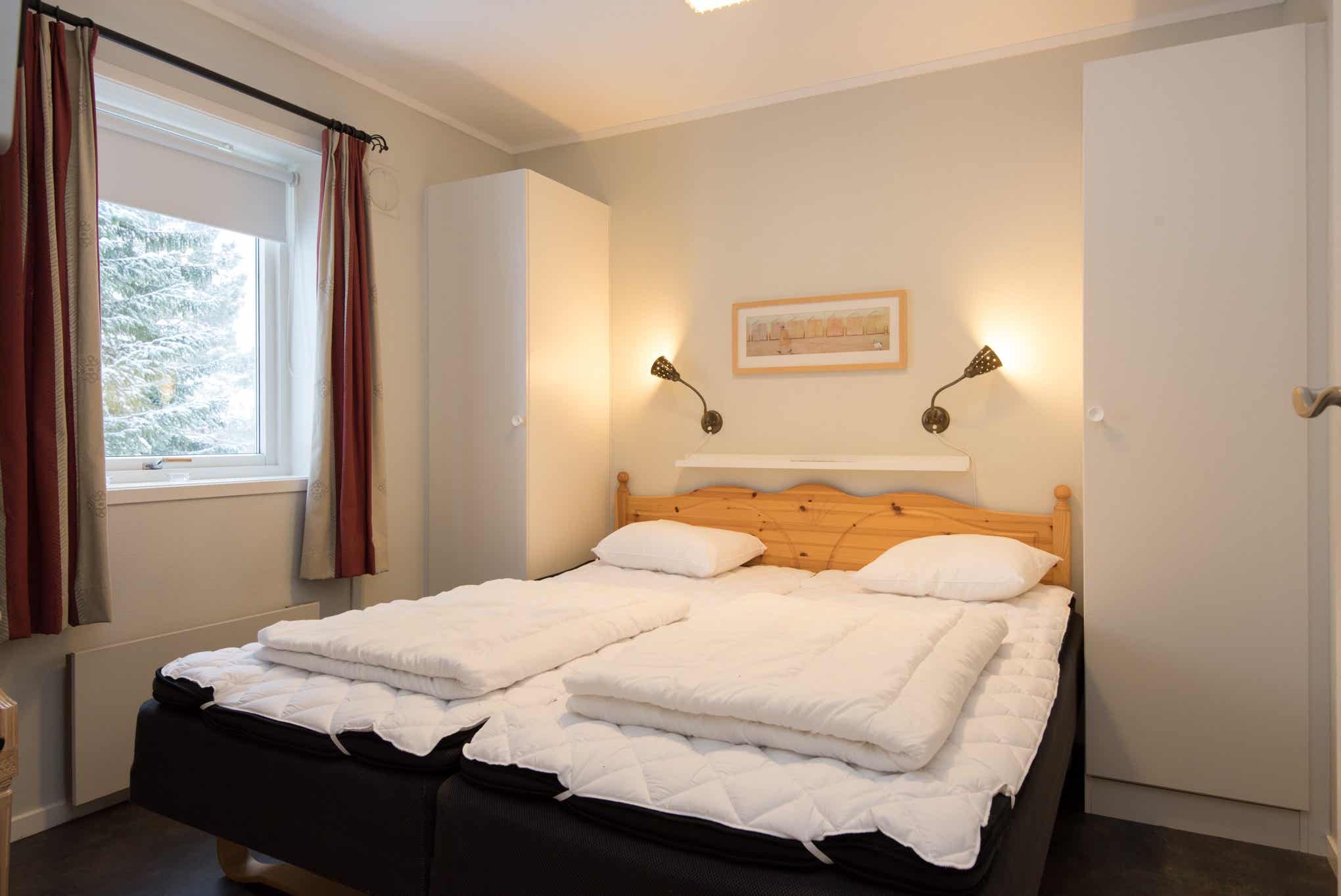 Slaapkamers:Slaapkamer-1 = 1 tweepersoonsbed. Slaapkamer-2 = 1 tweepersoonsbed. Slaapkamer-3 = 1 stapelbed, 1 stapelbed met breed onderbed.