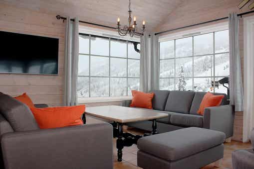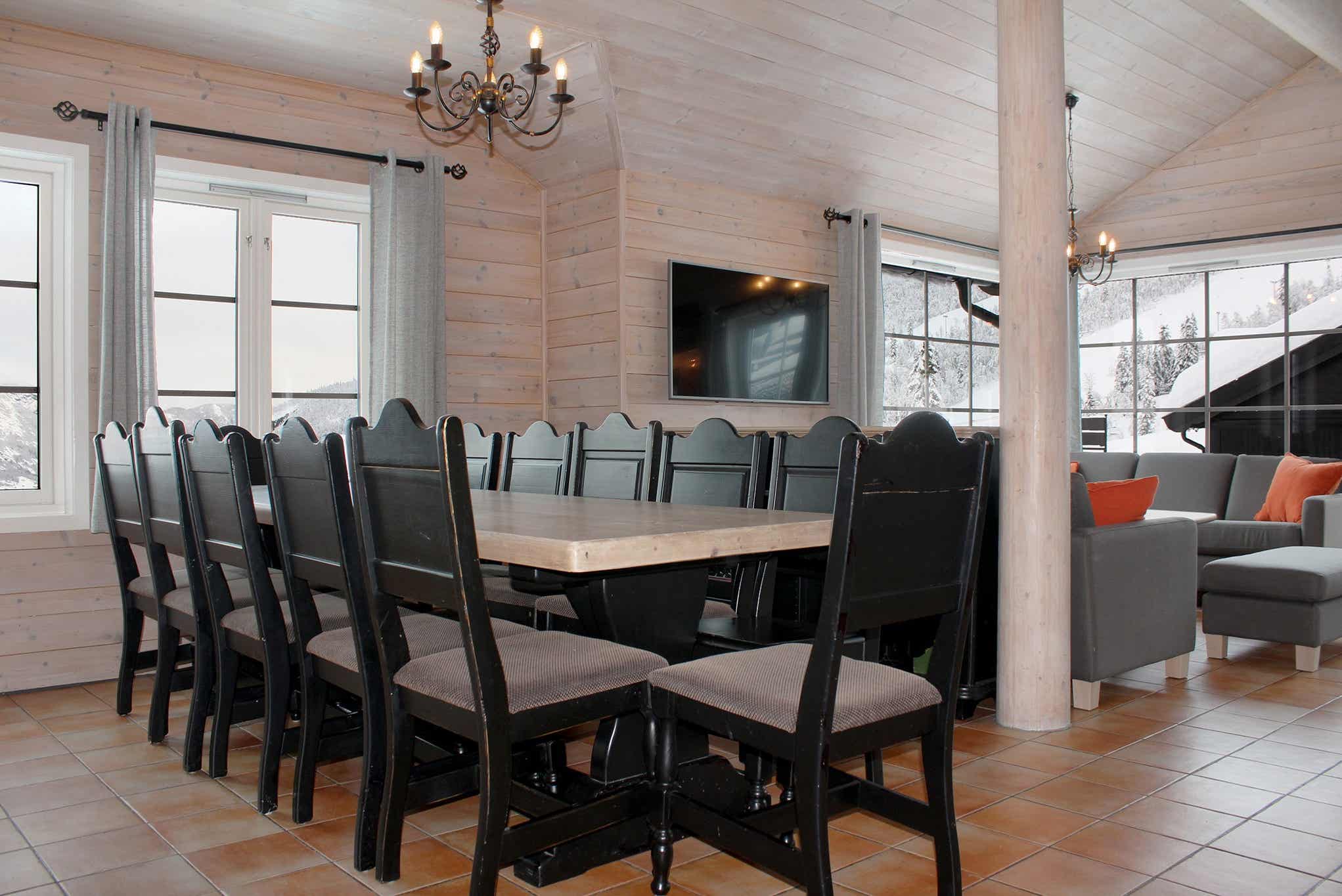 Veslestølen bevindt zich in Hemsedal Skisenter. Cabine, 12+2 bedden, 150 m², woonkamer met gecombineerde keuken, 5 slaapkamers, 3 douches, ligbad, 3 WC, sauna, late check-out om 13.00 uur