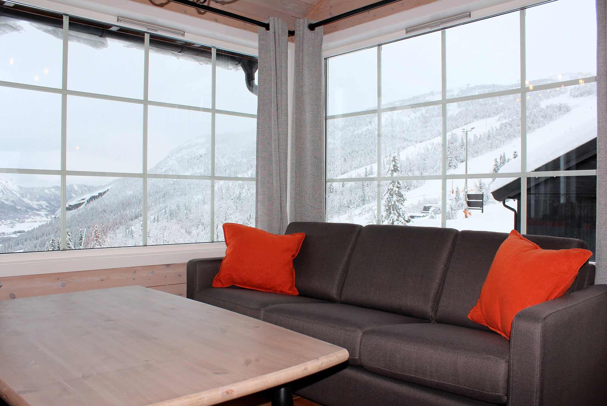 Veslestølen bevindt zich in Hemsedal Skisenter. Cabine, 12+2 bedden, 150 m², woonkamer met gecombineerde keuken, 5 slaapkamers, 3 douches, ligbad, 3 WC, sauna, late check-out om 13.00 uur