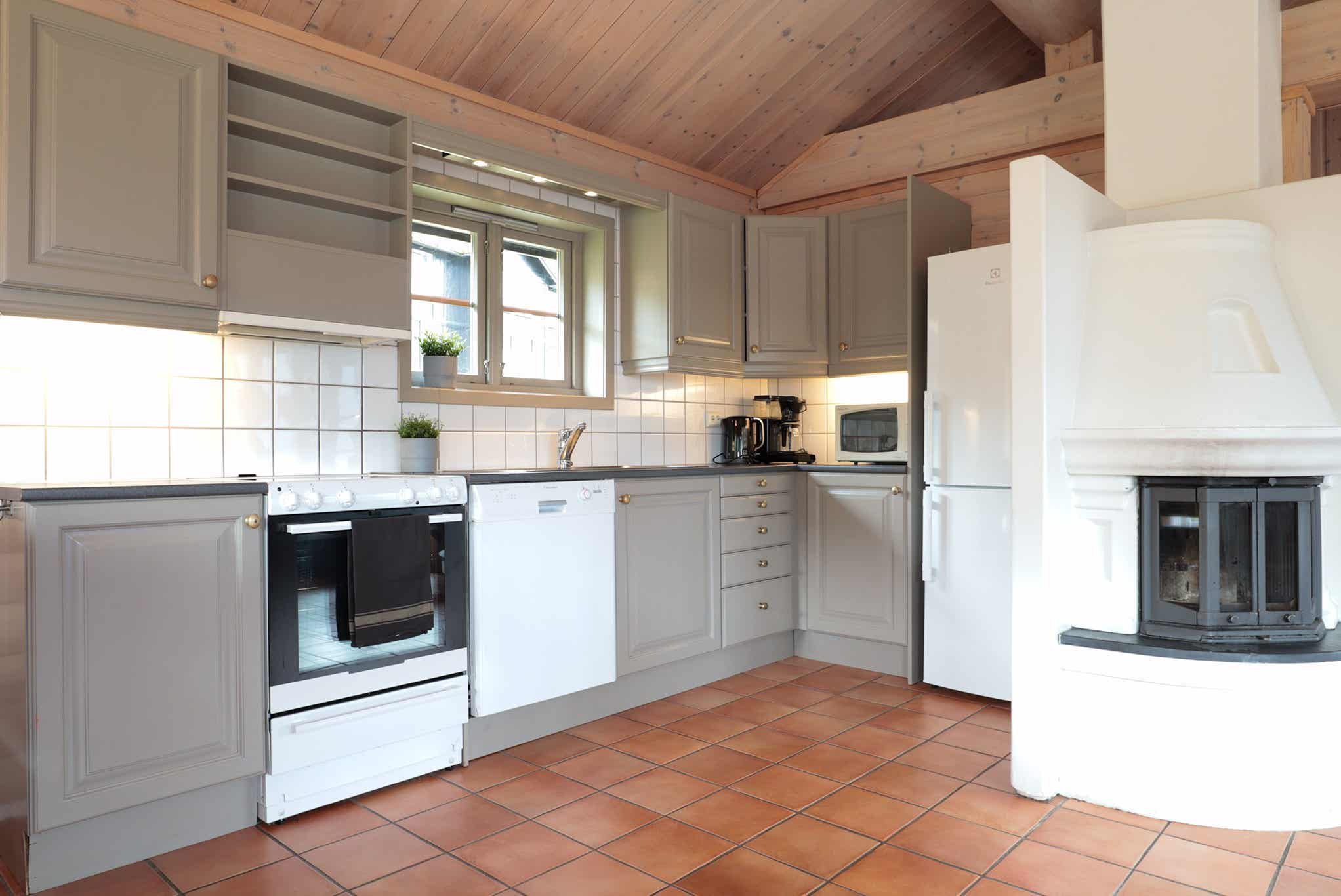 Keuken: fornuis, koelkast met vriesvak, vaatwasser, magnetron.