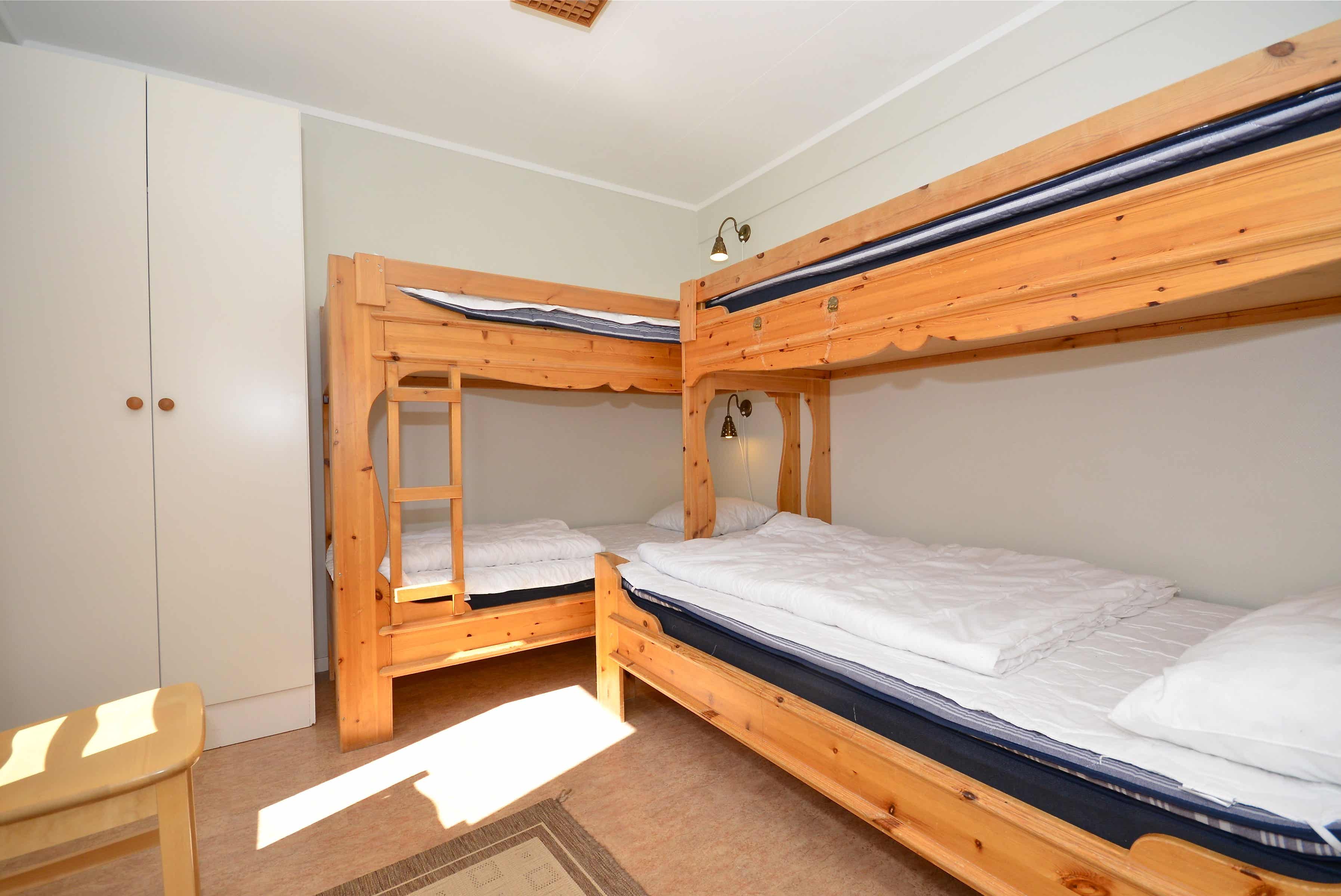 Slaapkamers:Slaapkamer-1 = 1 tweepersoonsbed. Slaapkamer-2 = 1 stapelbed, 1 stapelbed met breed onderbed. Slaapkamer-3 = 1 stapelbed, 1 stapelbed met breed onderbed.