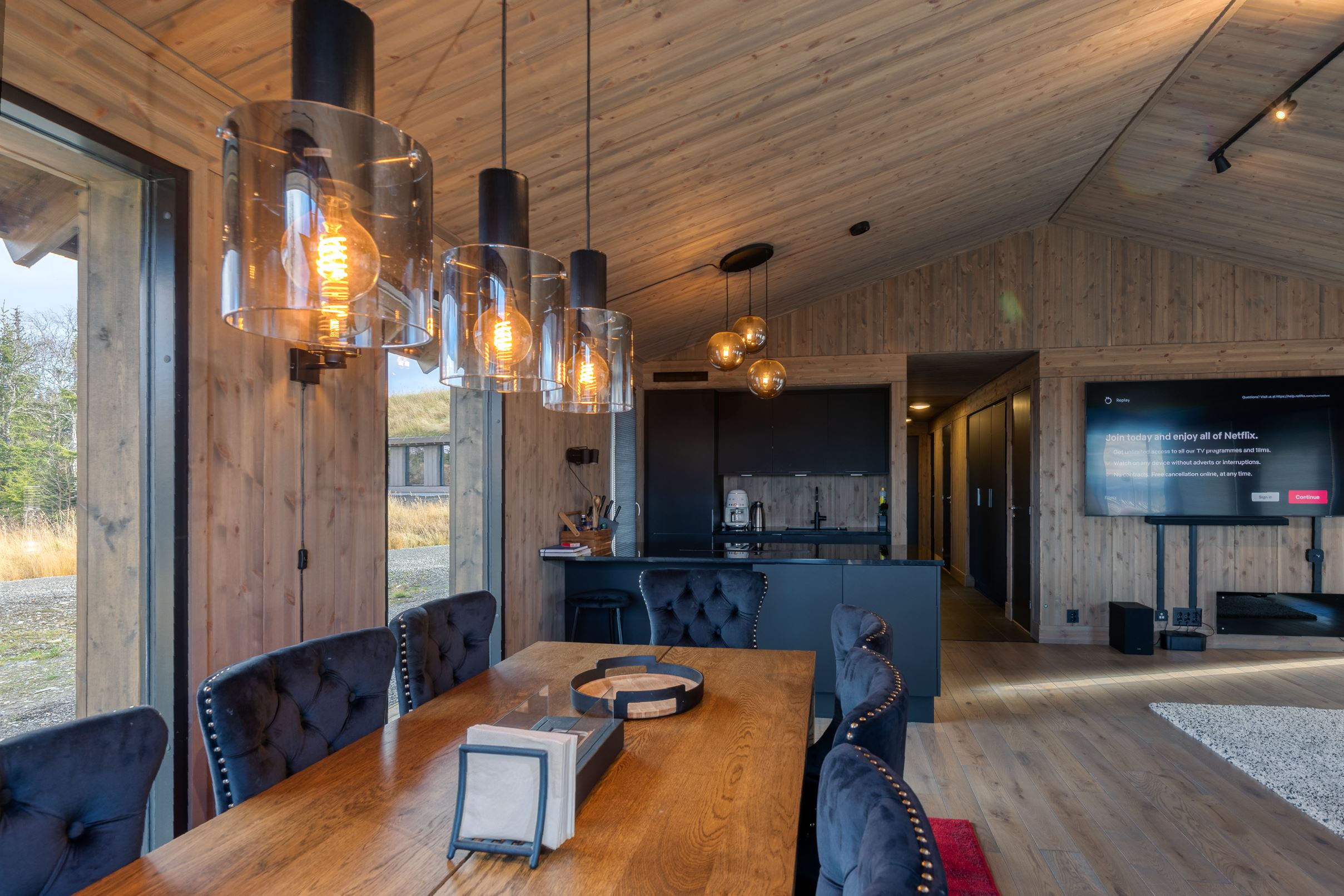 VinterVegen 8 biedt alles wat u nodig heeft voor een ontspannen verblijf. In de keuken vindt u een fornuis, koelkast, vriezer, magnetron, vaatwasser en koffiezetapparaat.