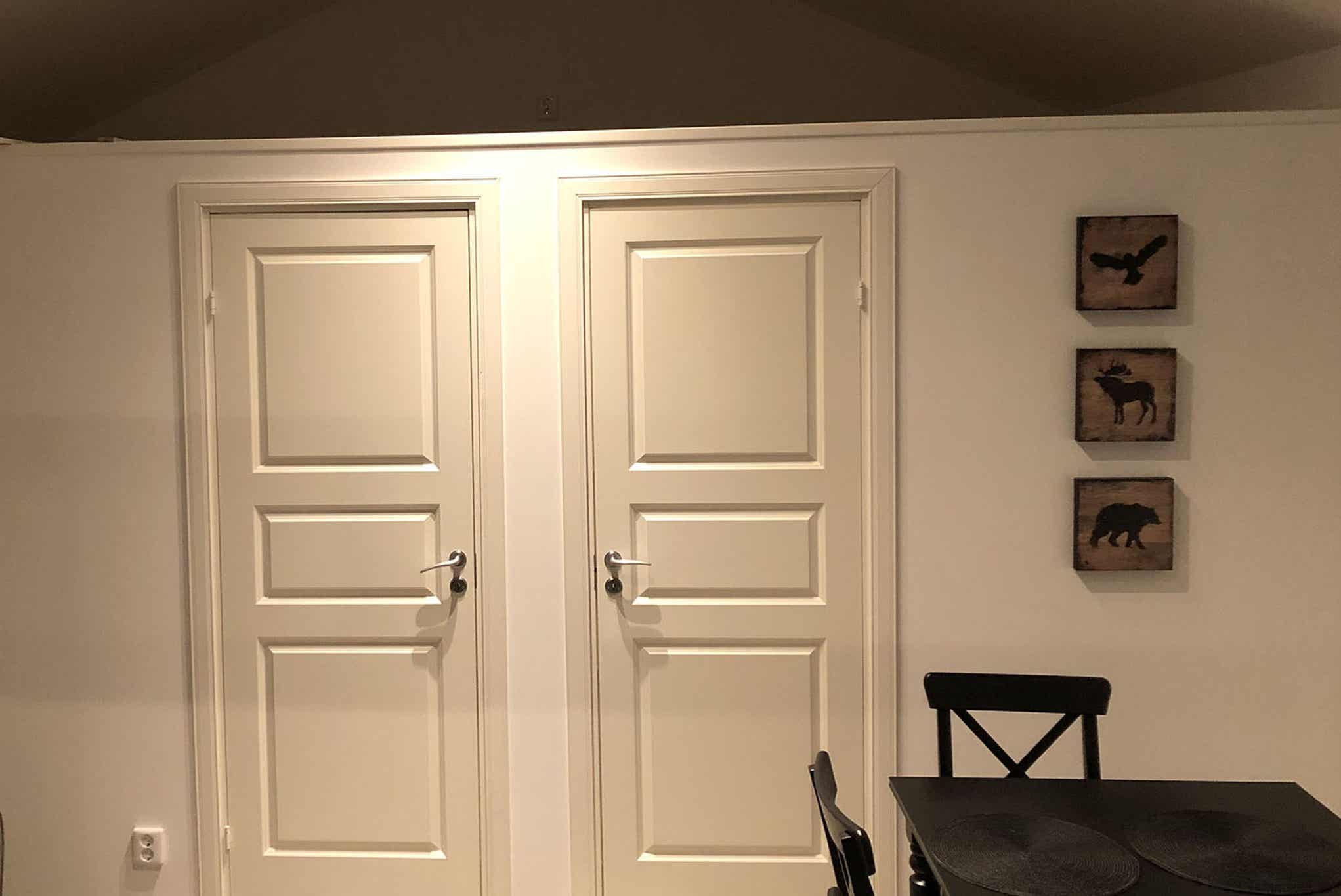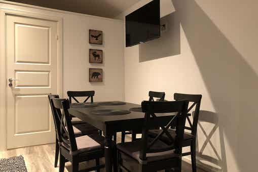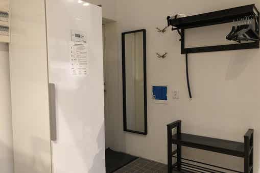 TV, droogkast, berging voor ski’s.