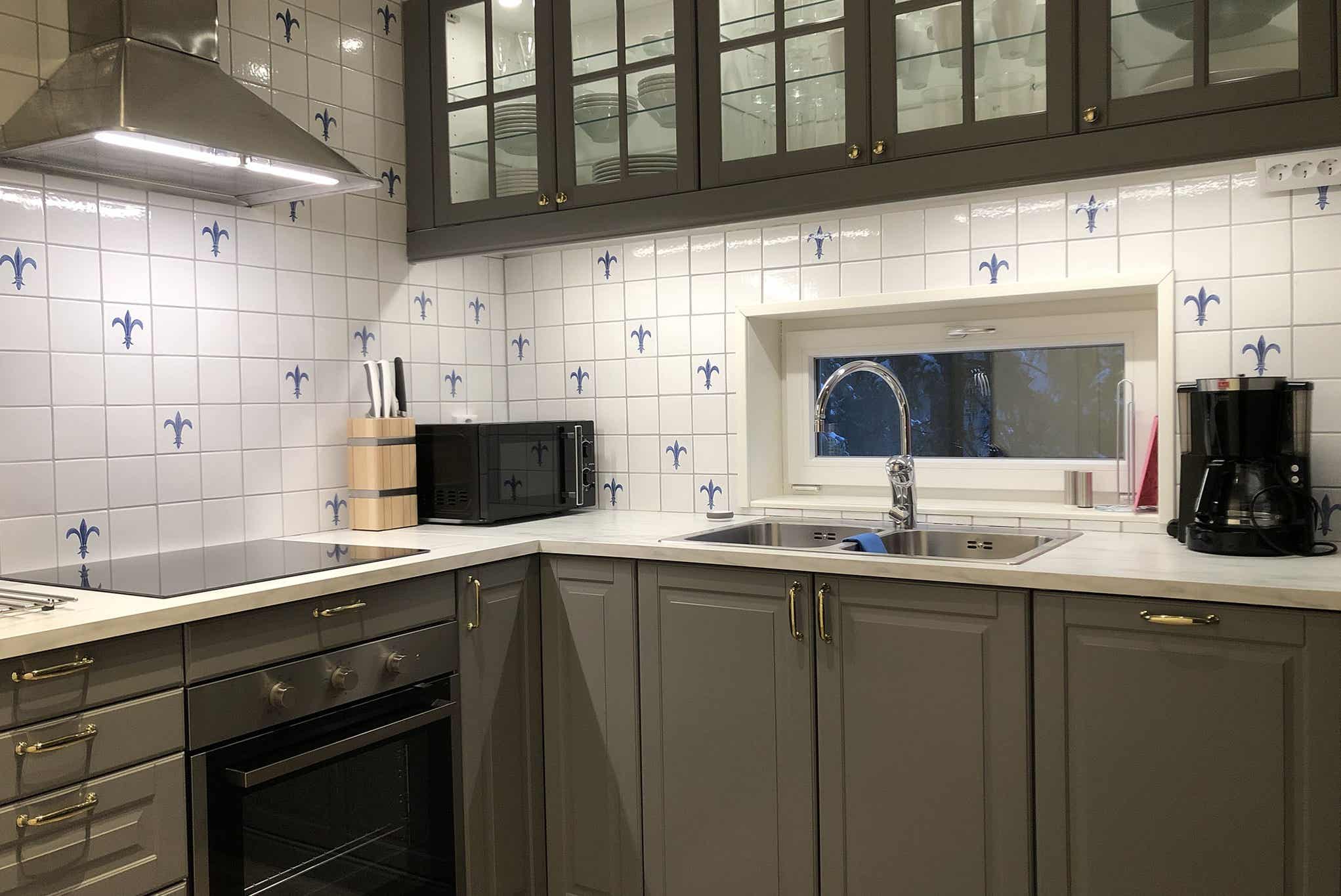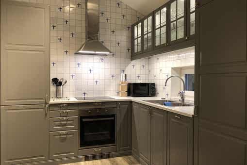 De keuken is voorzien van elektrische kookplaat, inbouwoven, koelkast met vriesvak, vaatwasser, magnetron.
