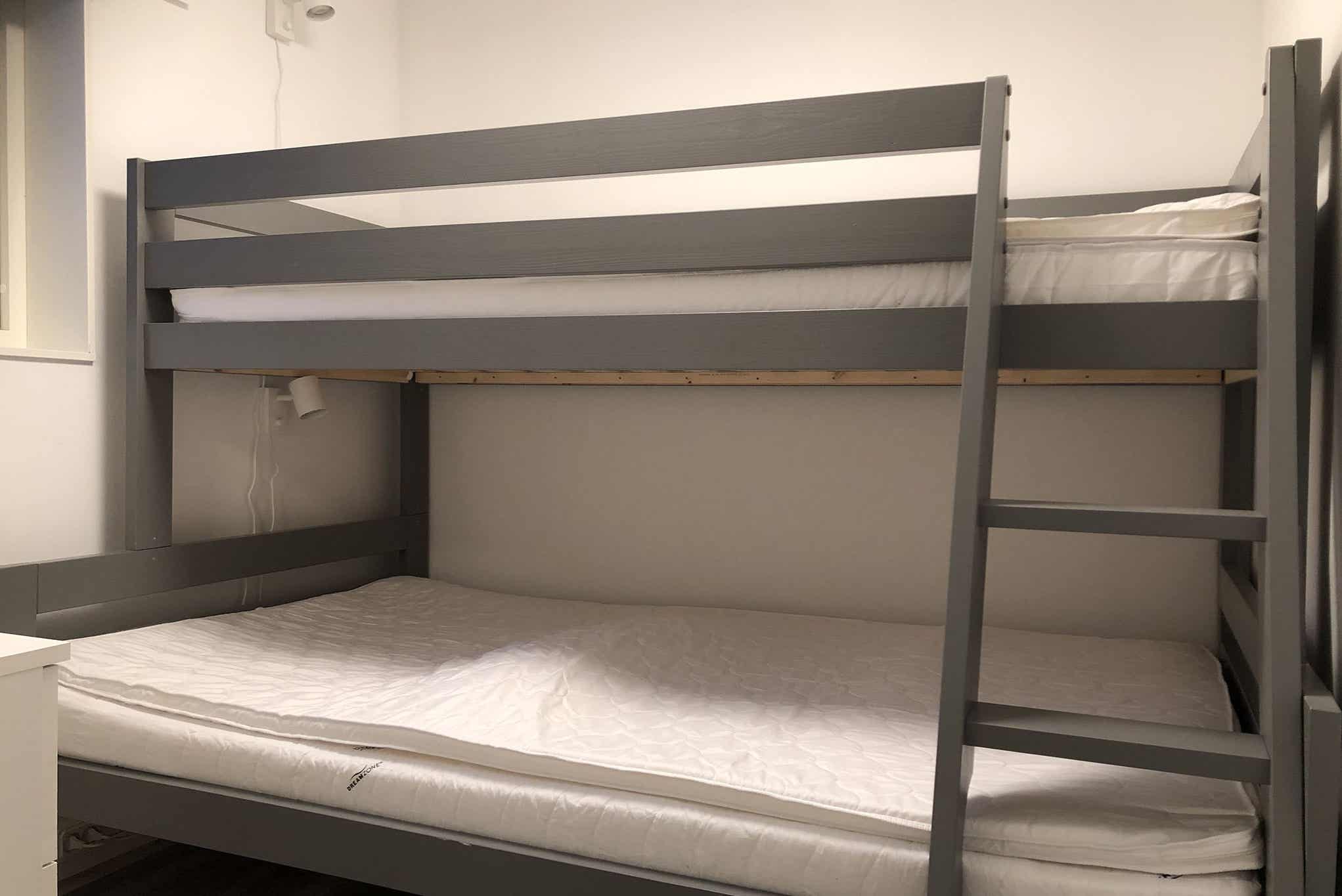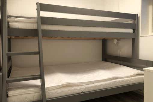 Slaapkamers:Slaapkamer-1 = 1 stapelbed met 120 cm breed onderbed en 90 cm breed bovenbed. Slaapkamer-2 = 1 stapelbed met 120 cm breed onderbed en 90 cm breed bovenbed.