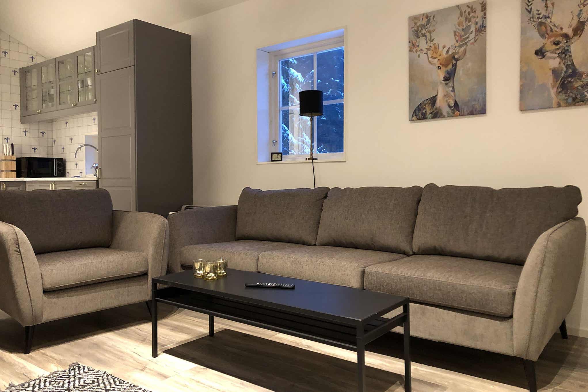 Woonkamer met gecombineerde keuken.